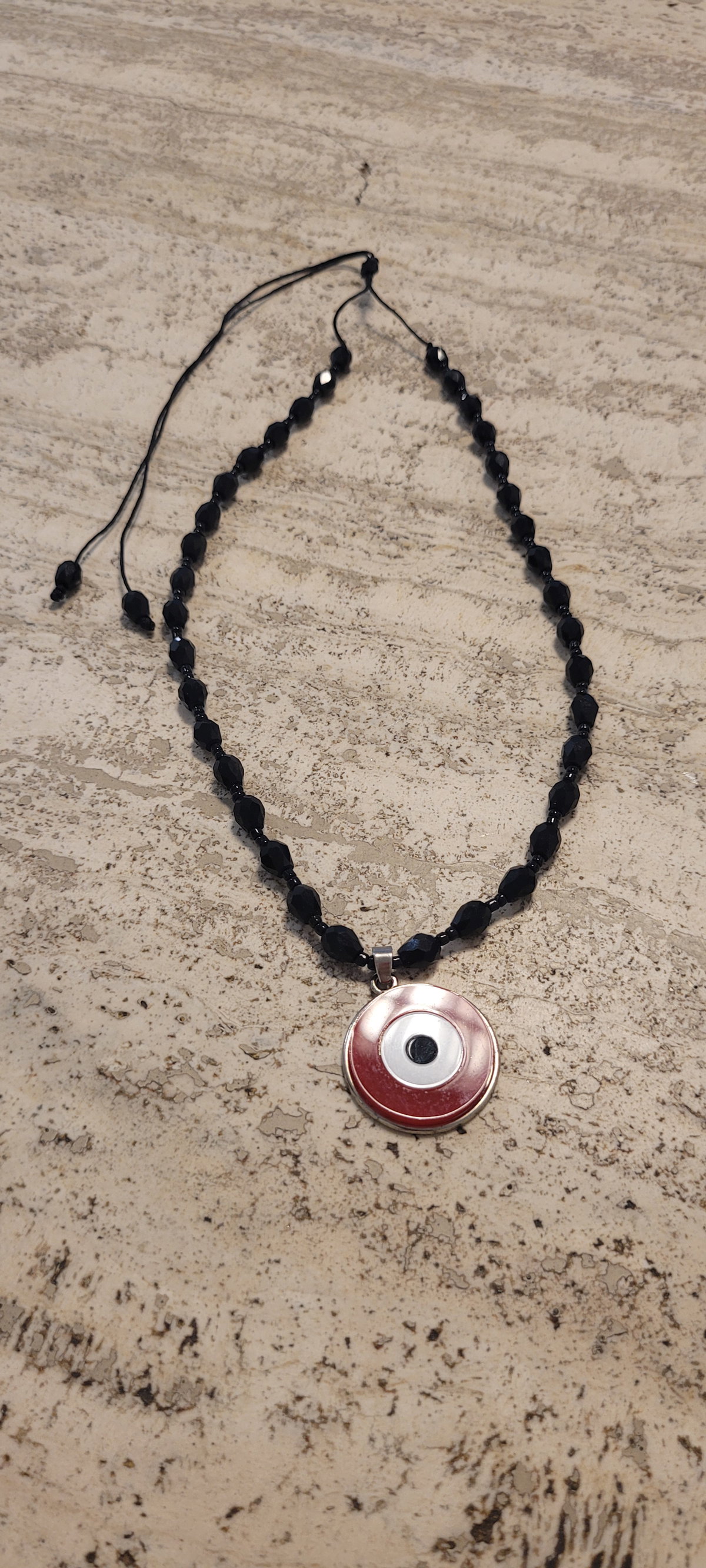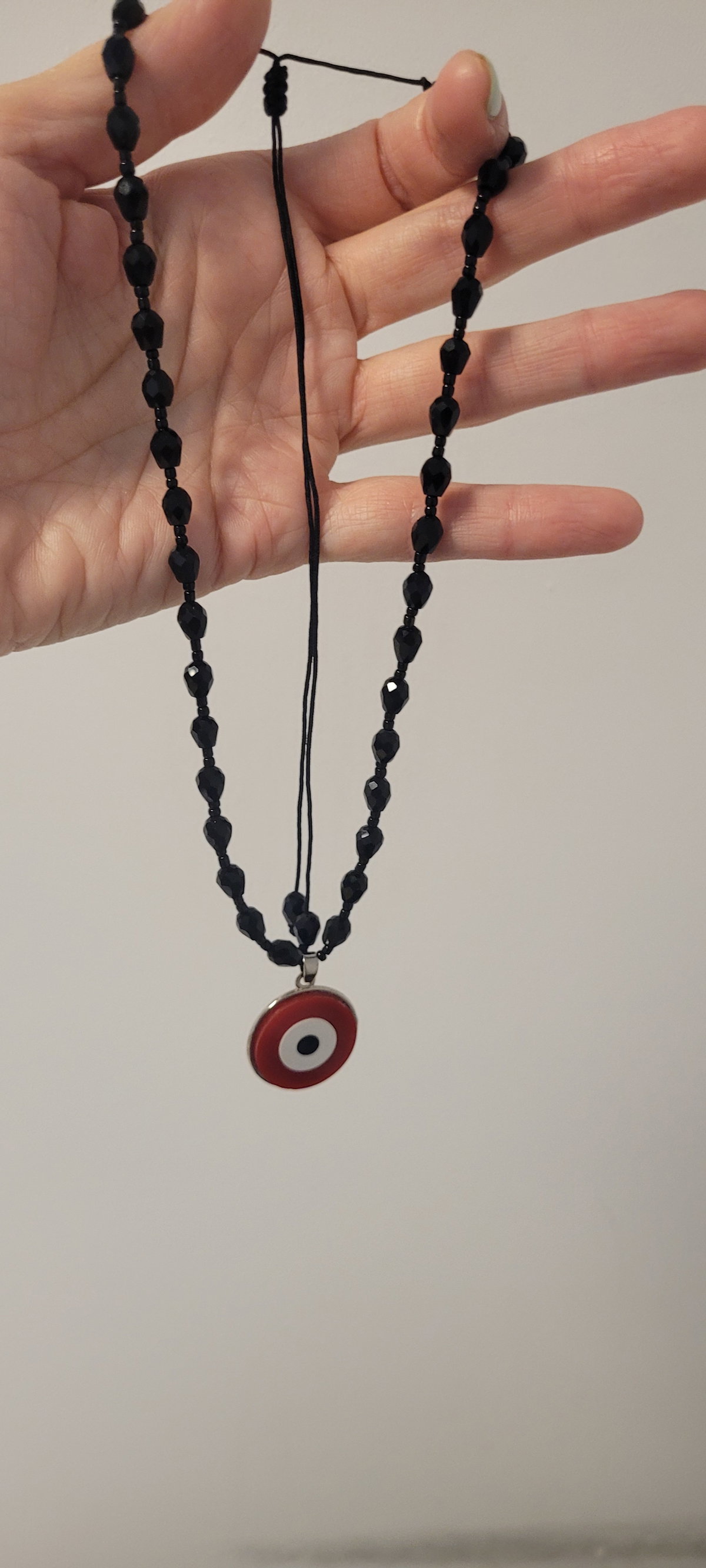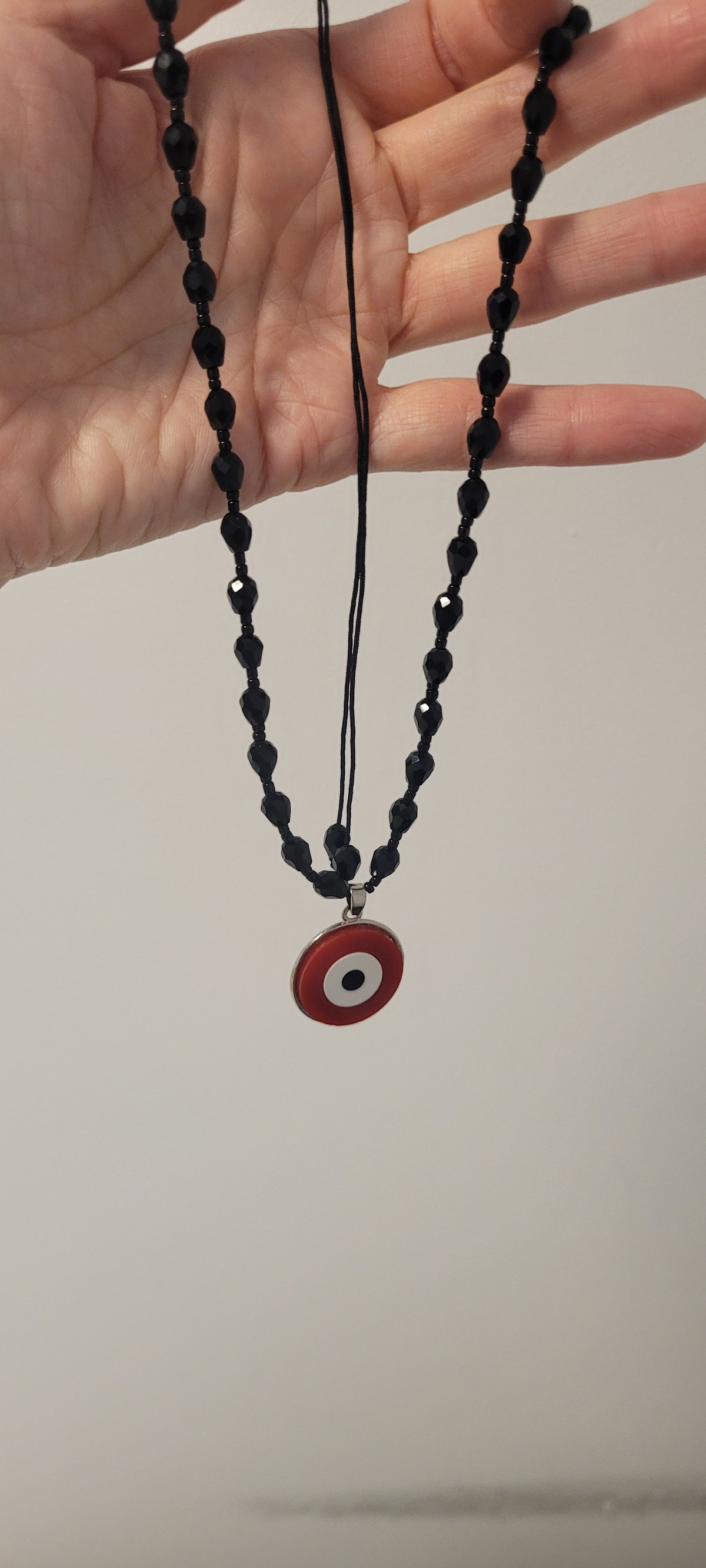 Realizado en cristales negros con dije de metal y resina, un toque de elegancia con significado...