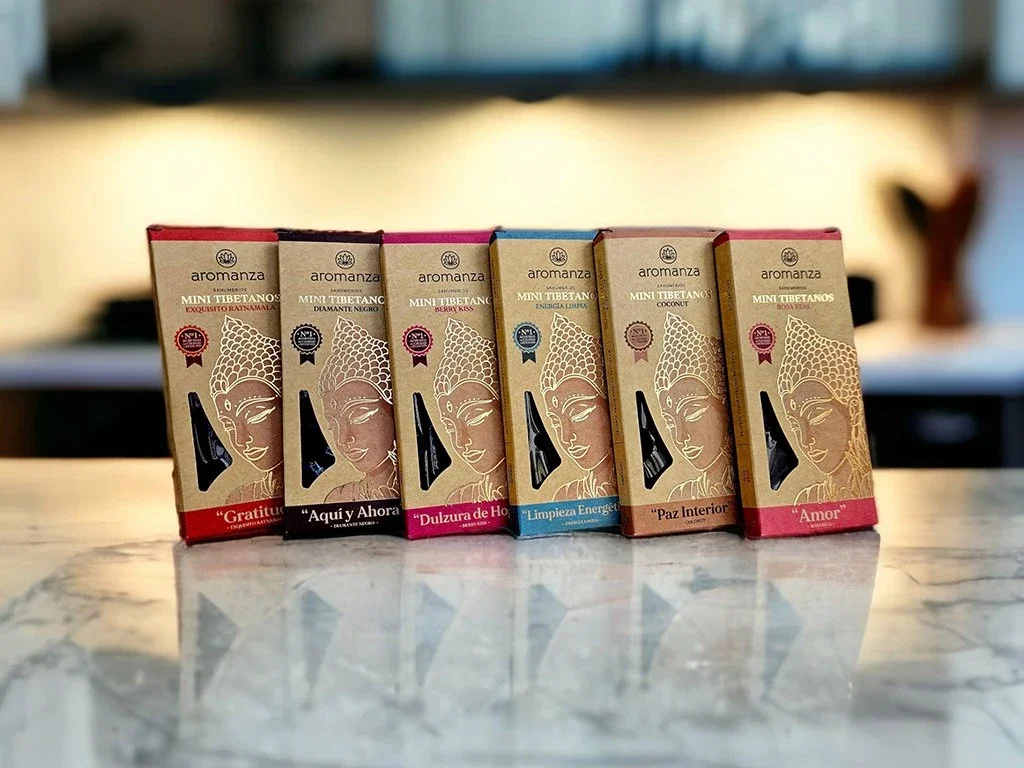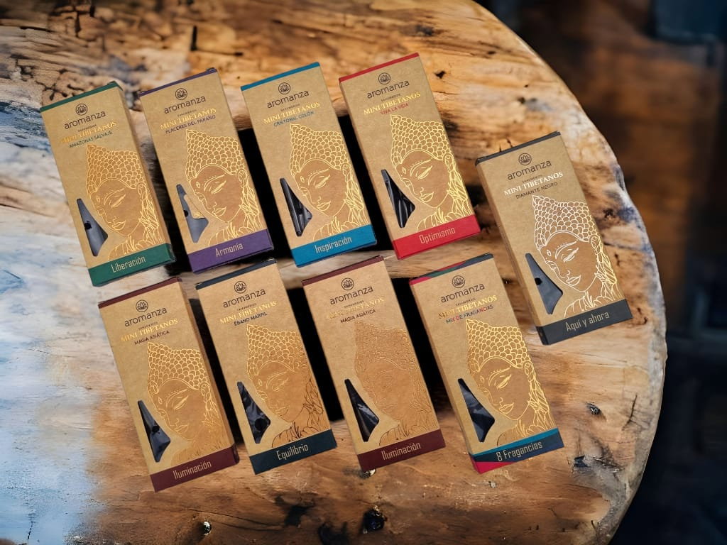 Sahumerio triple Mini Tibetano Aromanza extra fuerte x 8 unidades.