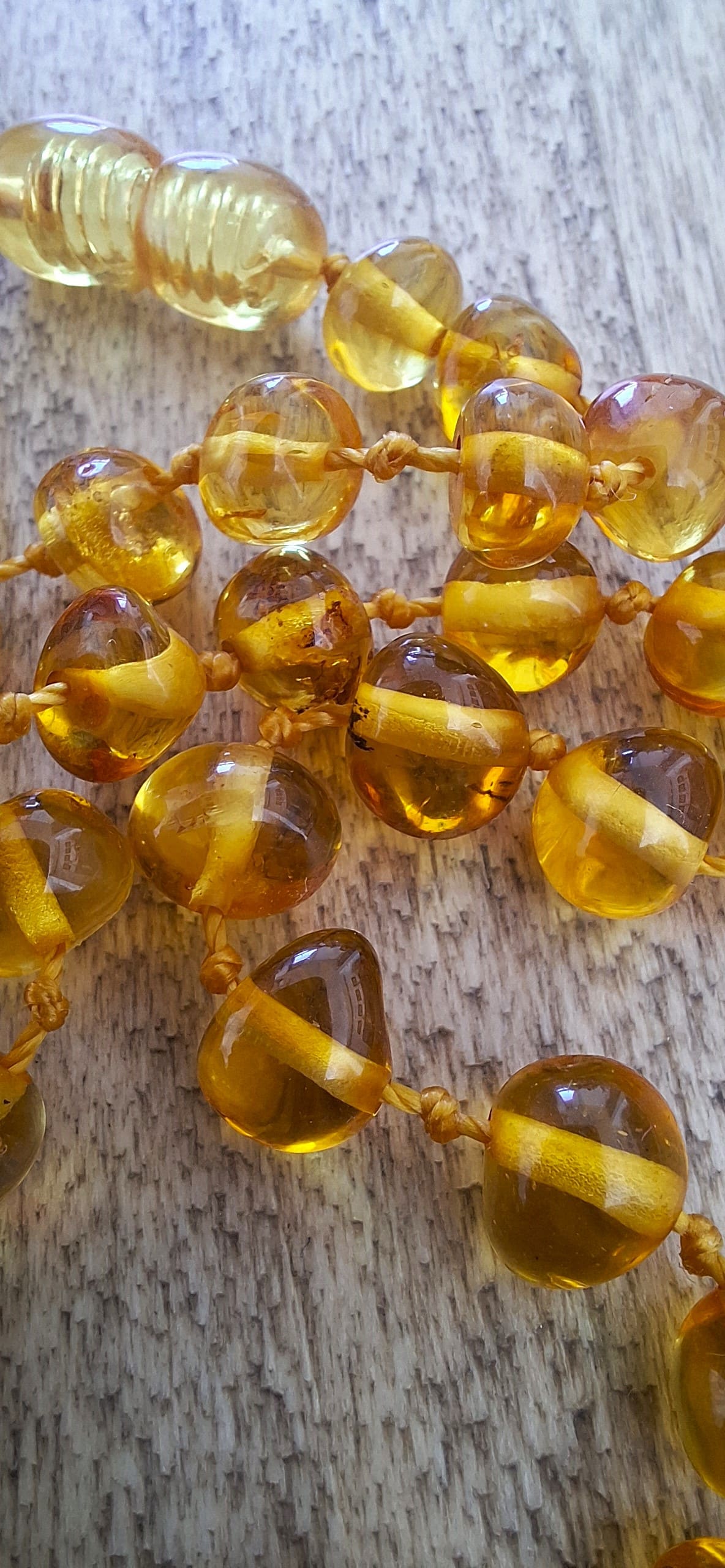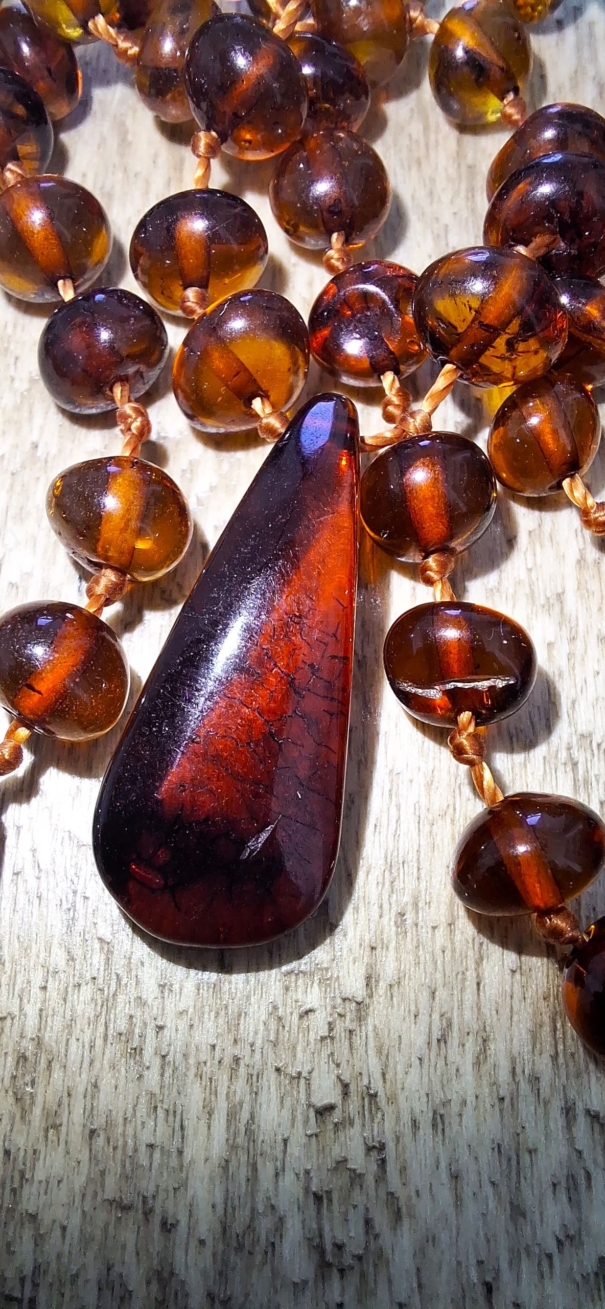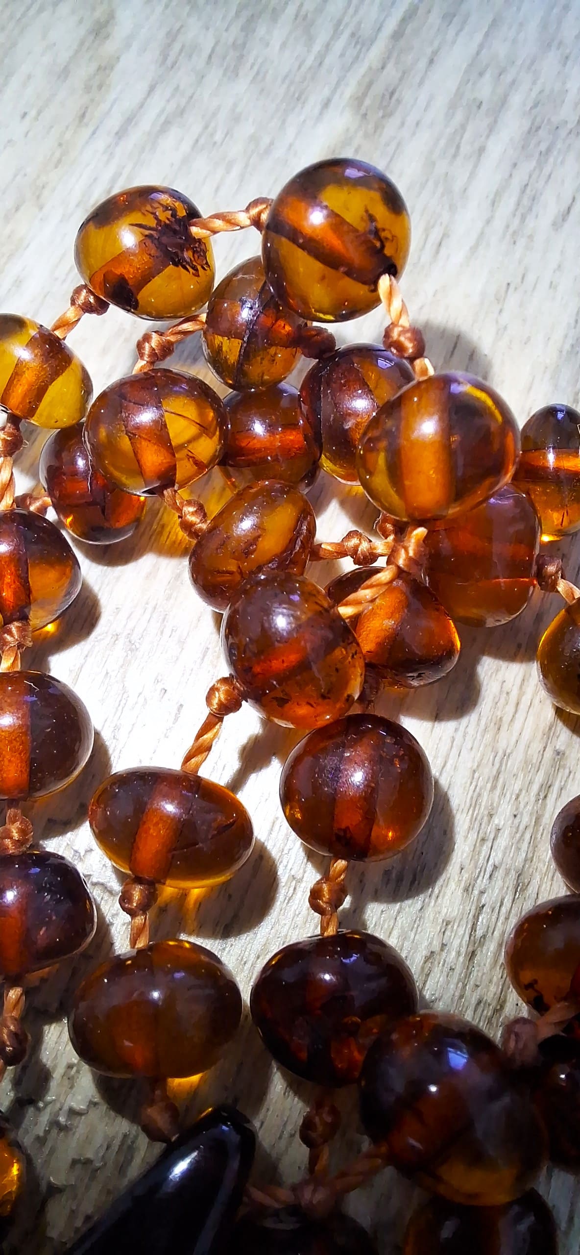 Este collar de ámbar báltico, importado directamente de Lituania, es más que una joya; es un pedazo de historia.