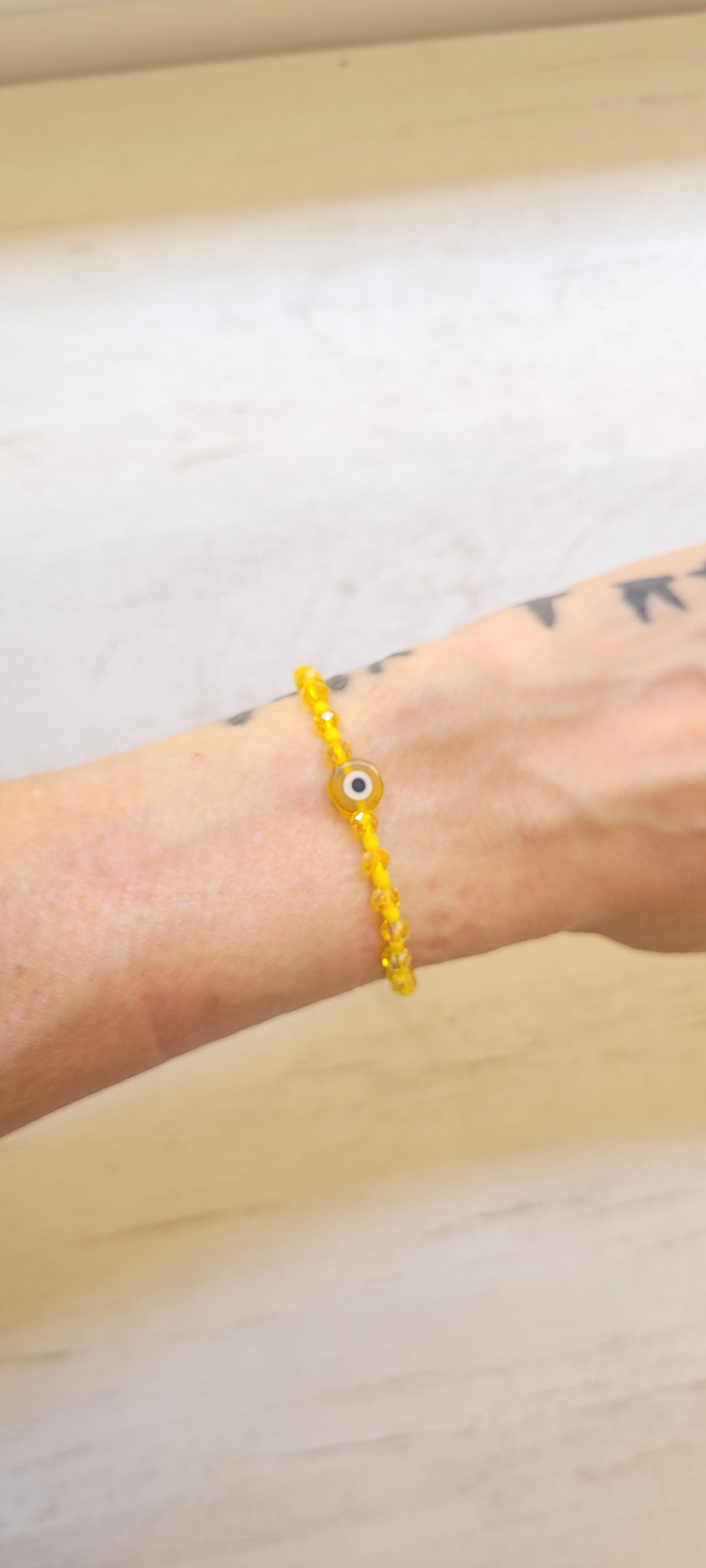 Pulsera de cristales y mostacillas con dije de vidrio. Apta para el agua