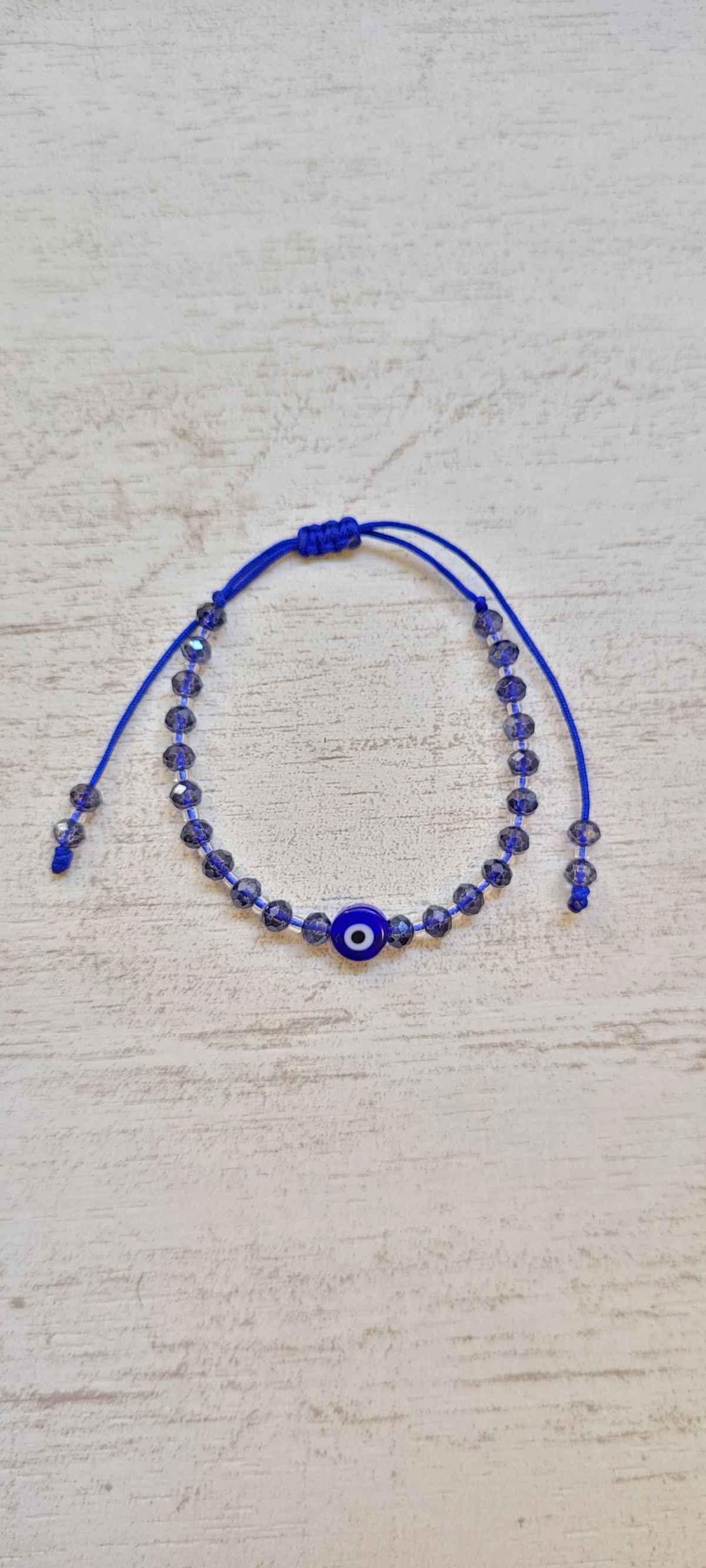 Pulsera de cristales y mostacillas con dije de vidrio. Apta para el agua.