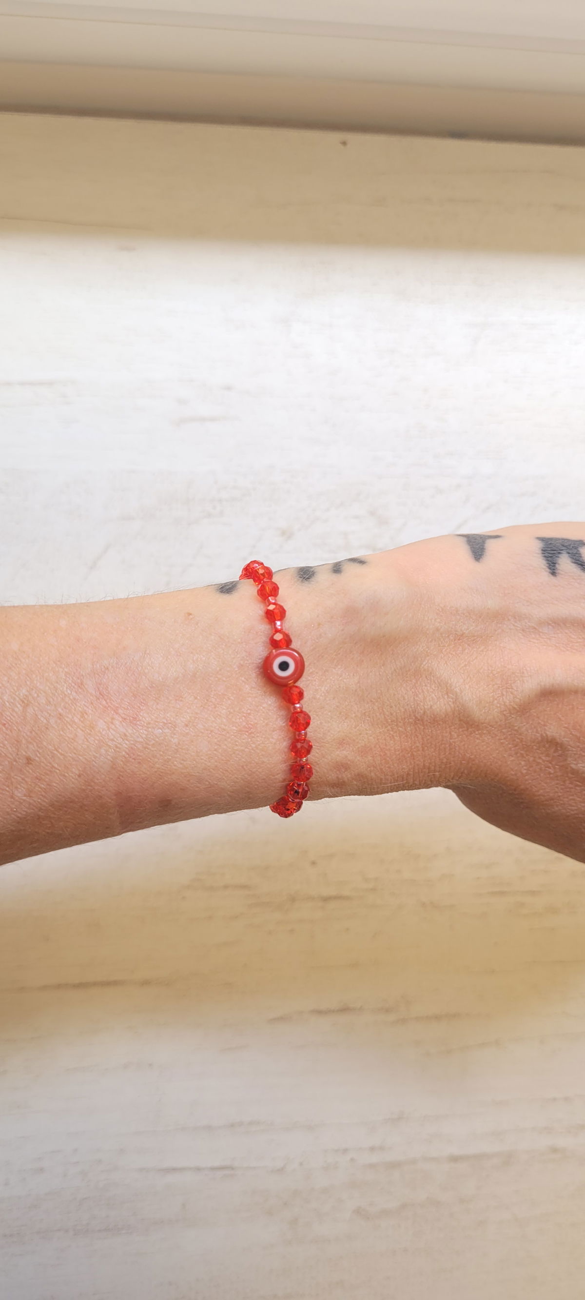Pulsera de cristales y mostacillas con dije de vidrio. Apta para el agua