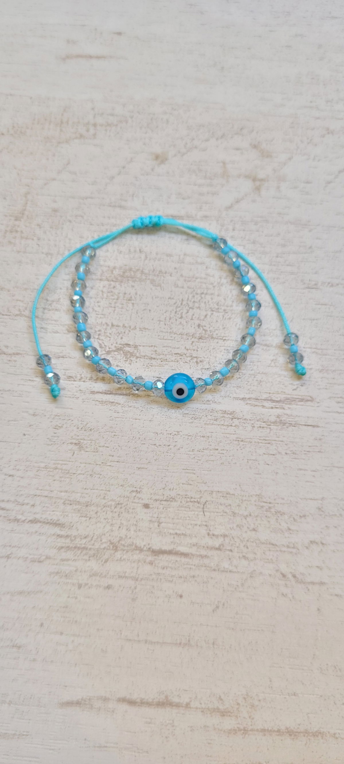 Pulsera de cristales y mostacillas con dije de vidrio. Apta para el agua.