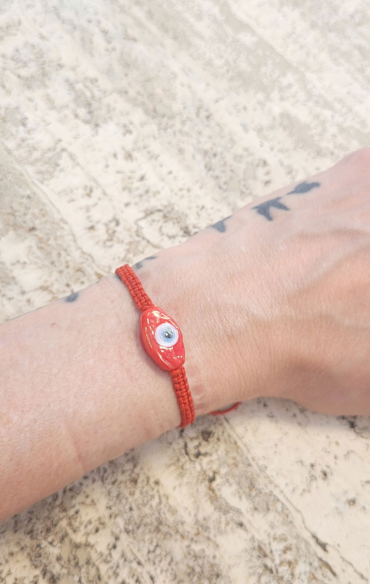 Pulsera tejida en macrame con dije de murano. Apta para el agua.