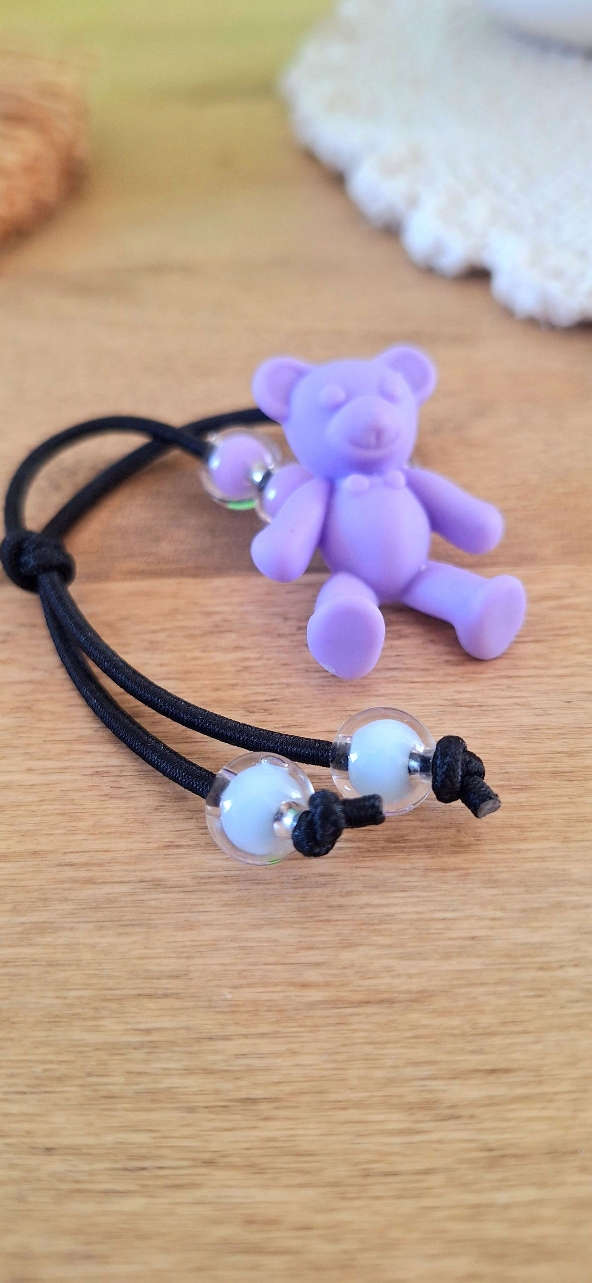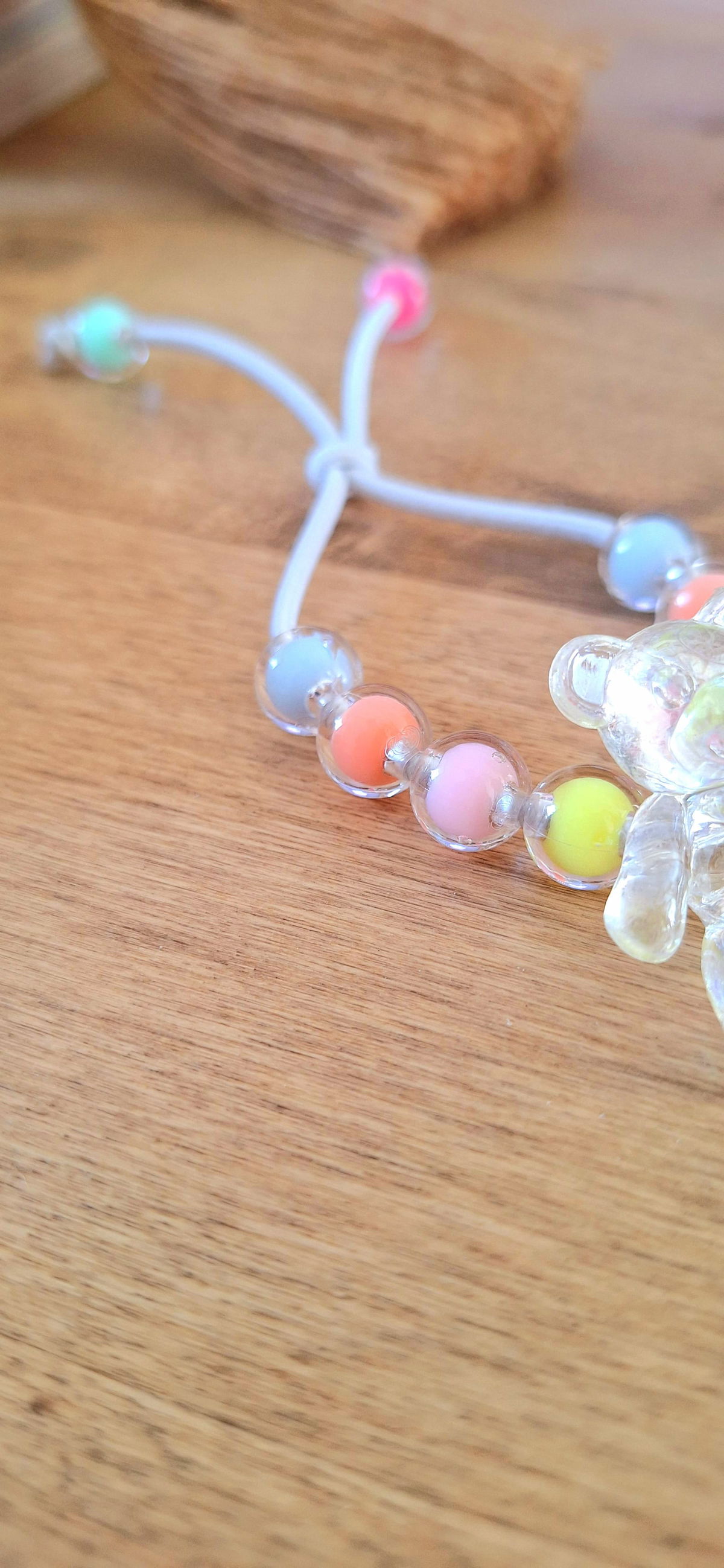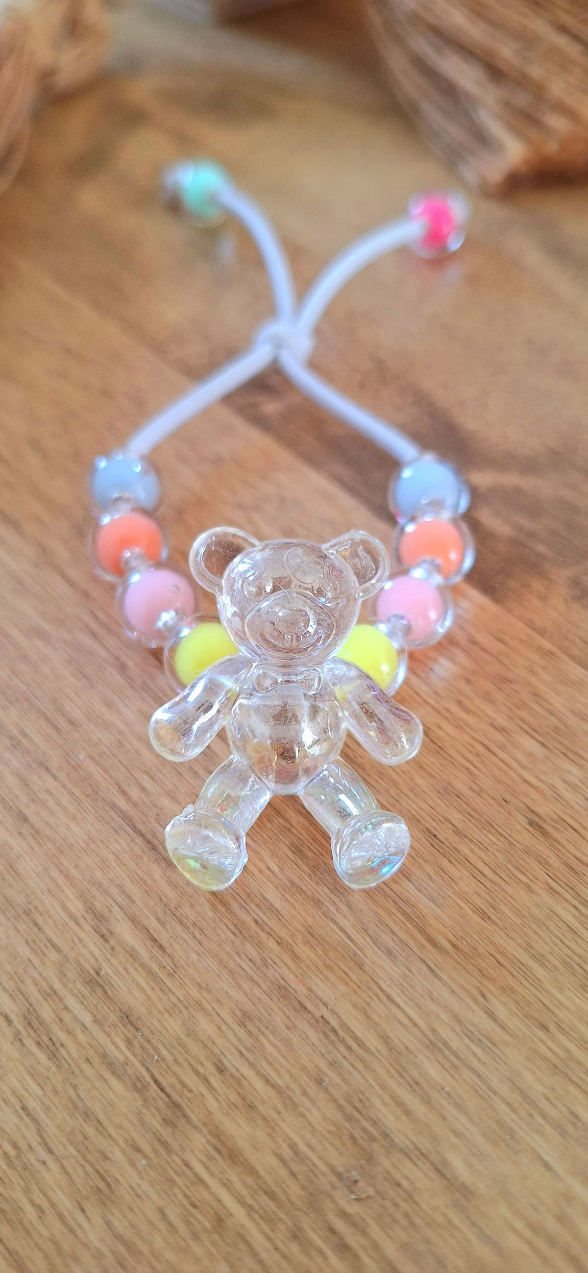 Gomita Elastica con Cuentas de Acrilico de Colores y Dije de Oso Grande.