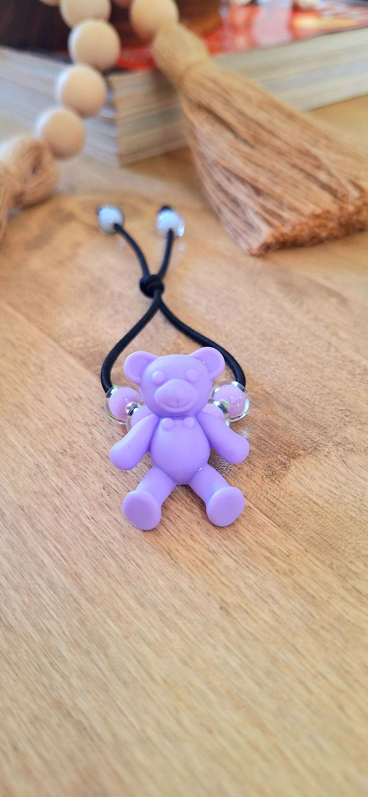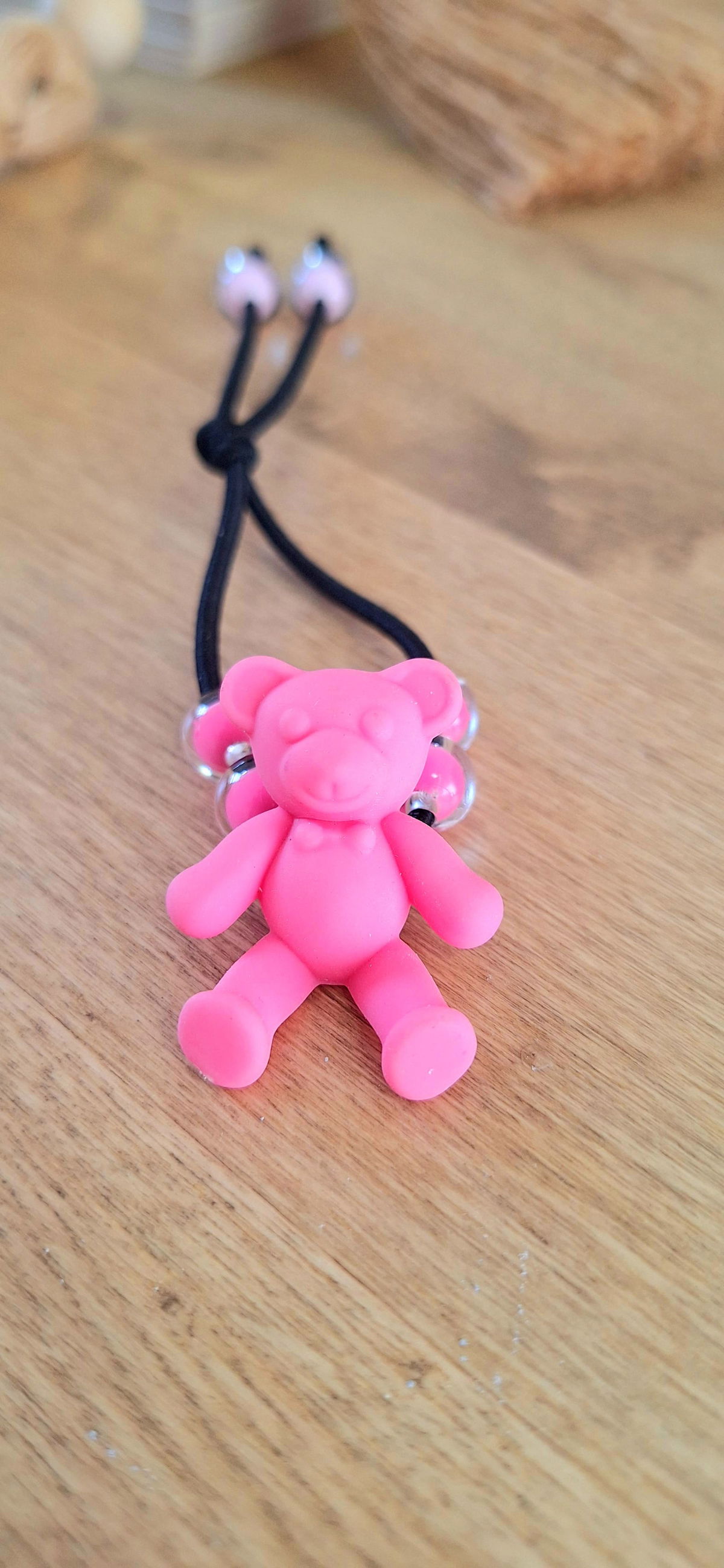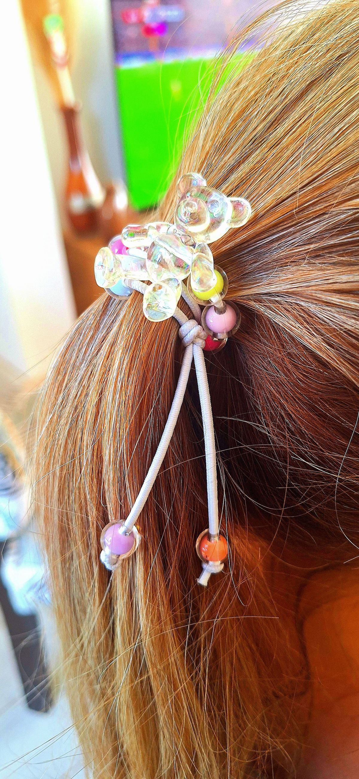 Gomita Elastica con Cuentas de Acrilico de Colores y Dije de Oso Grande.