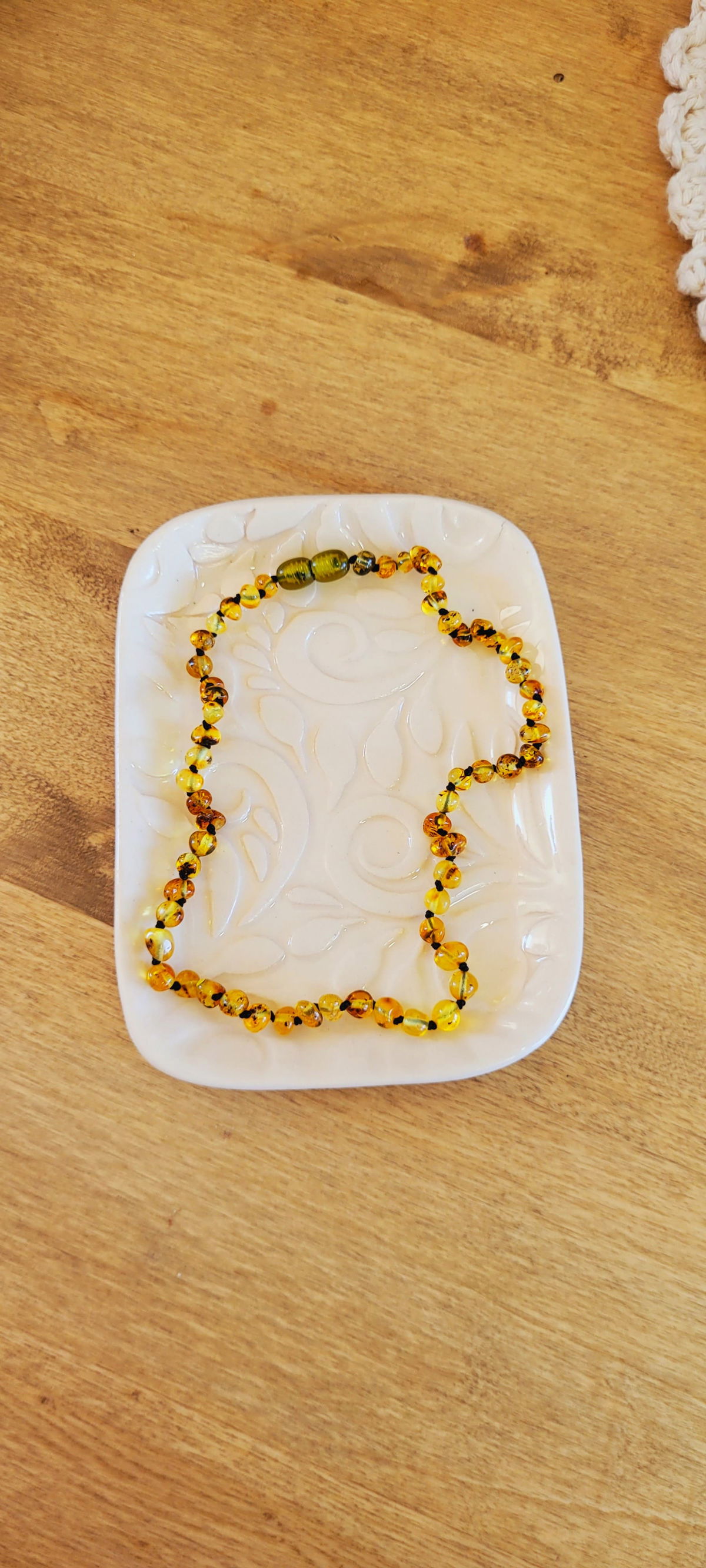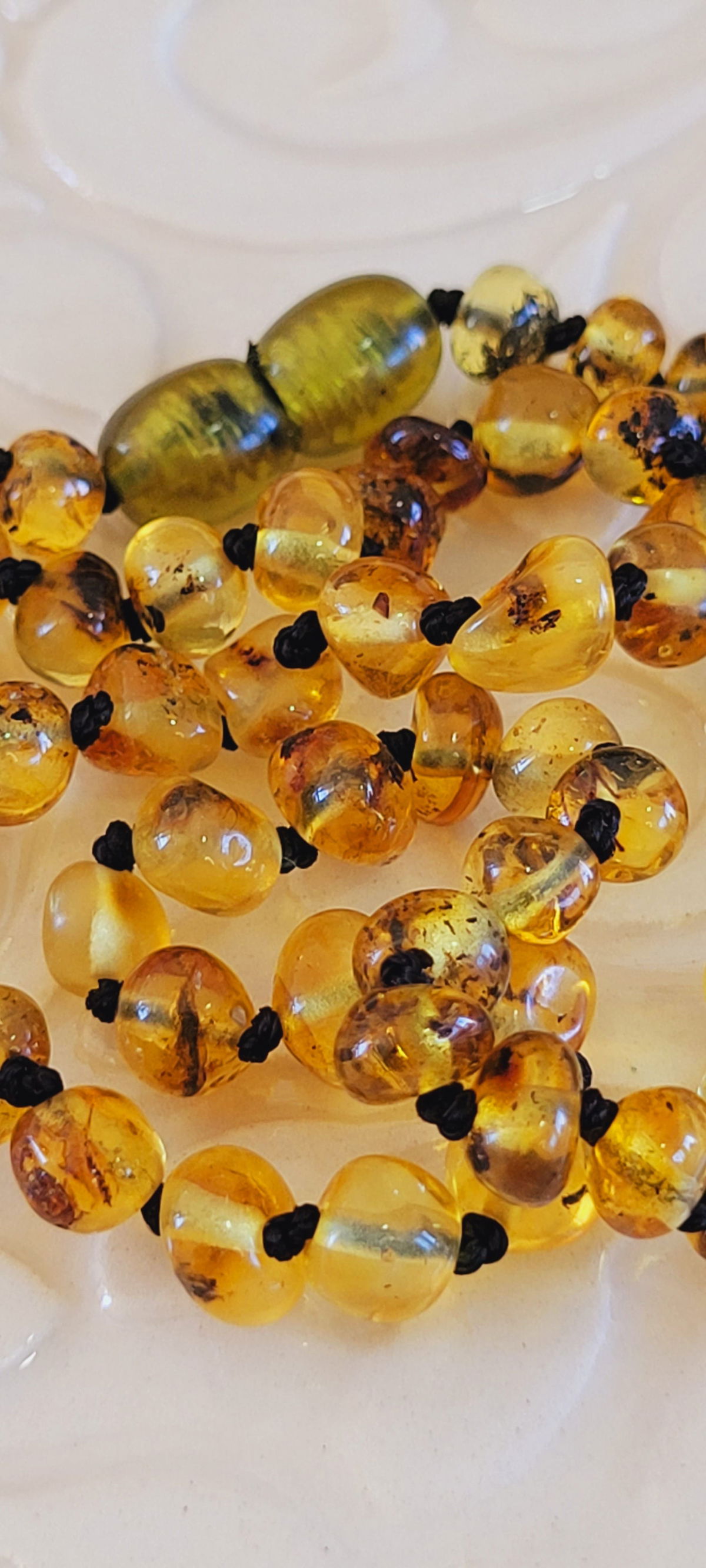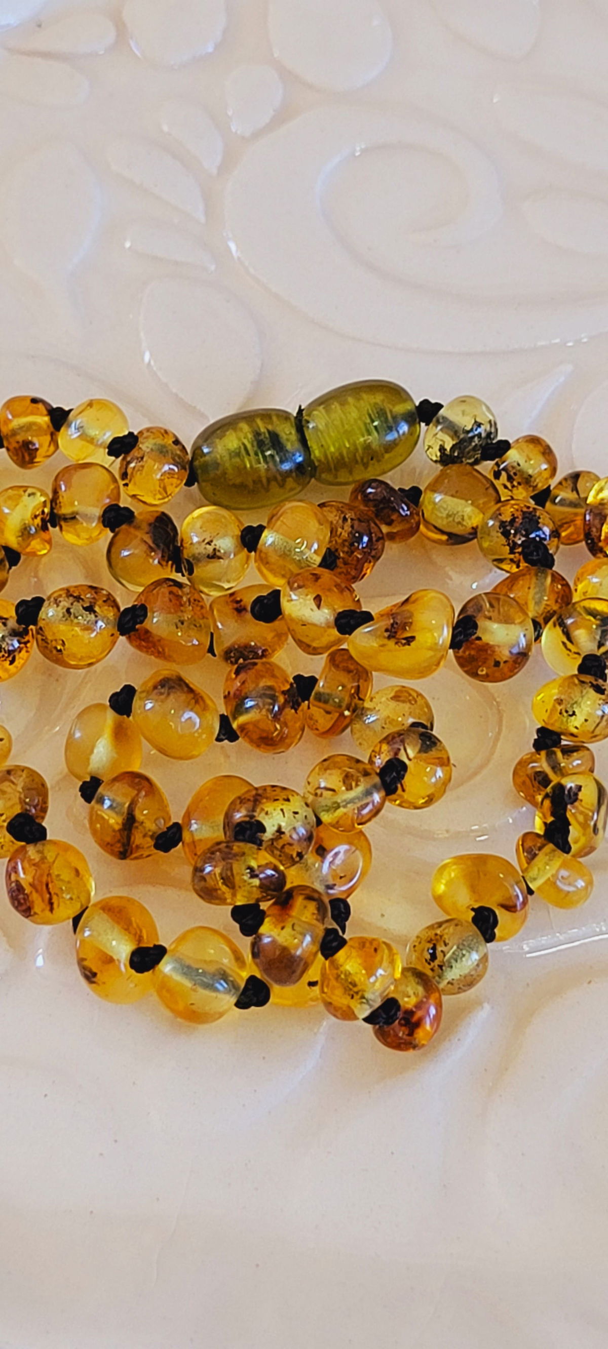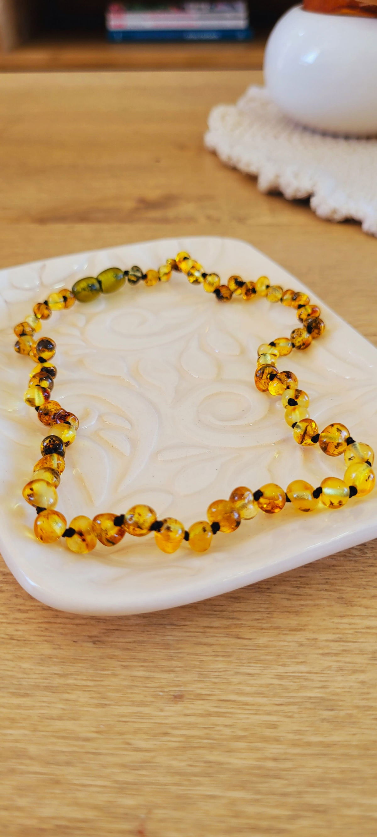 Cuando el collar está en contacto con la piel, el calor libera ácido succínico, el cual se absorbe directamente al torrente sanguíneo, brindando alivio a dolores, mejorando la circulación y fortaleciendo el sistema inmunológico. Ideal para bebés, niños y adultos. ¡Luce este collar y sentí el bienestar que el ámbar verde puede ofrecerte!
