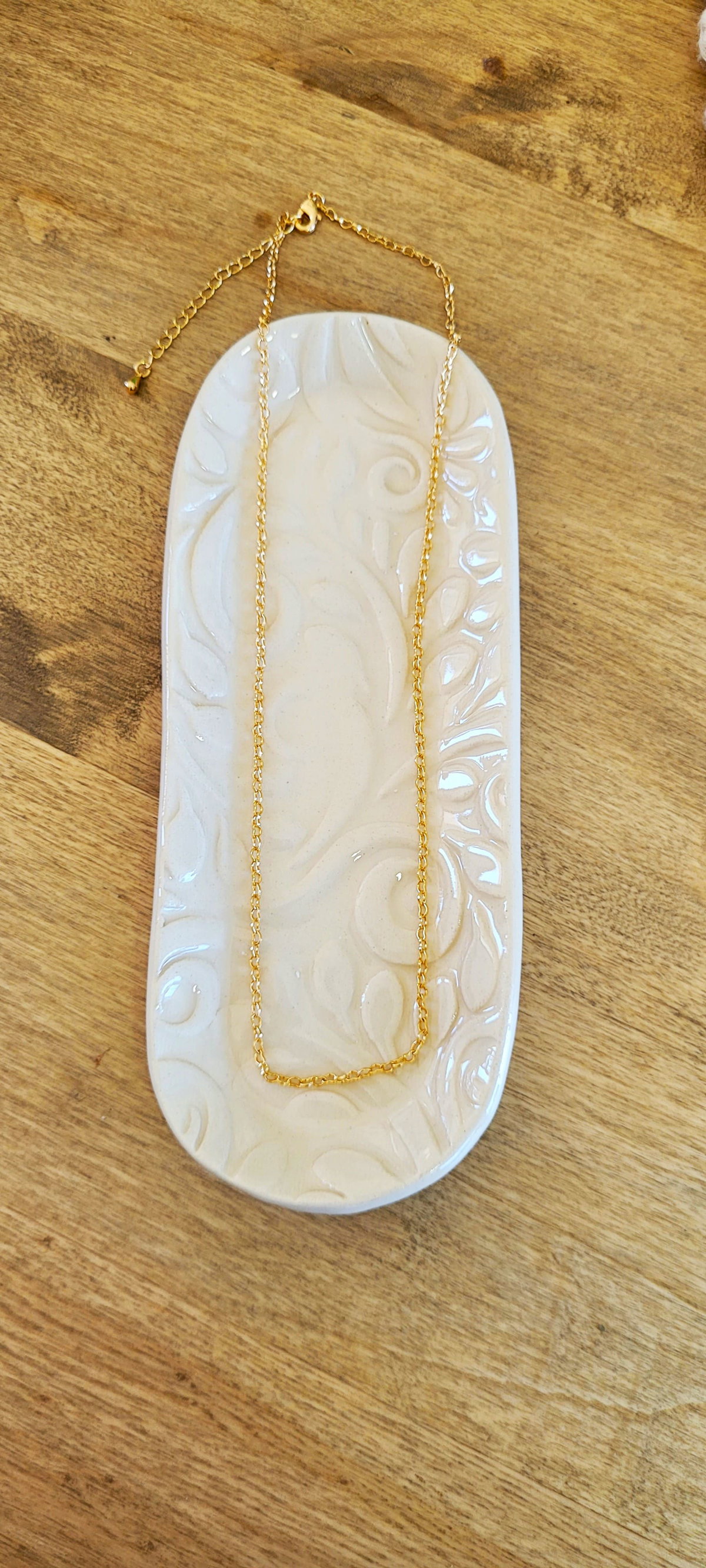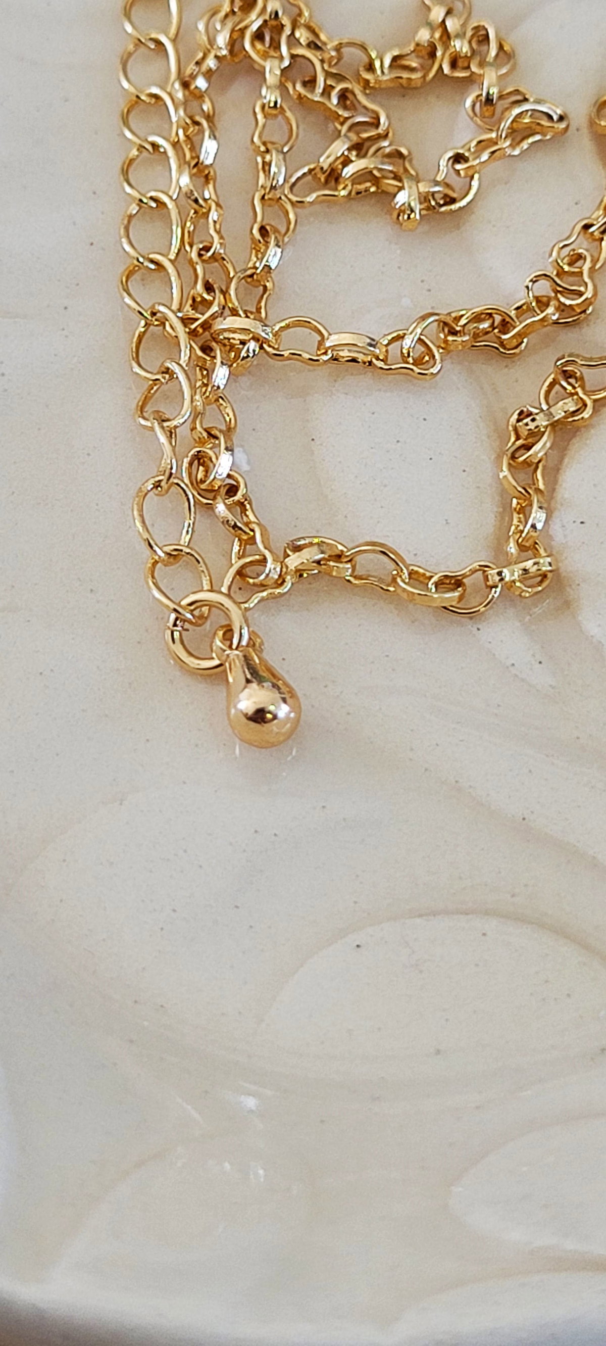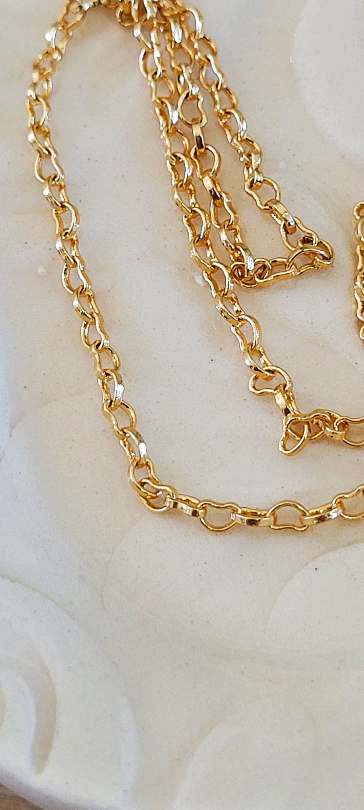 Collar con Eslabon de Corazones, 40 cm Largo, Enchapado en Oro.