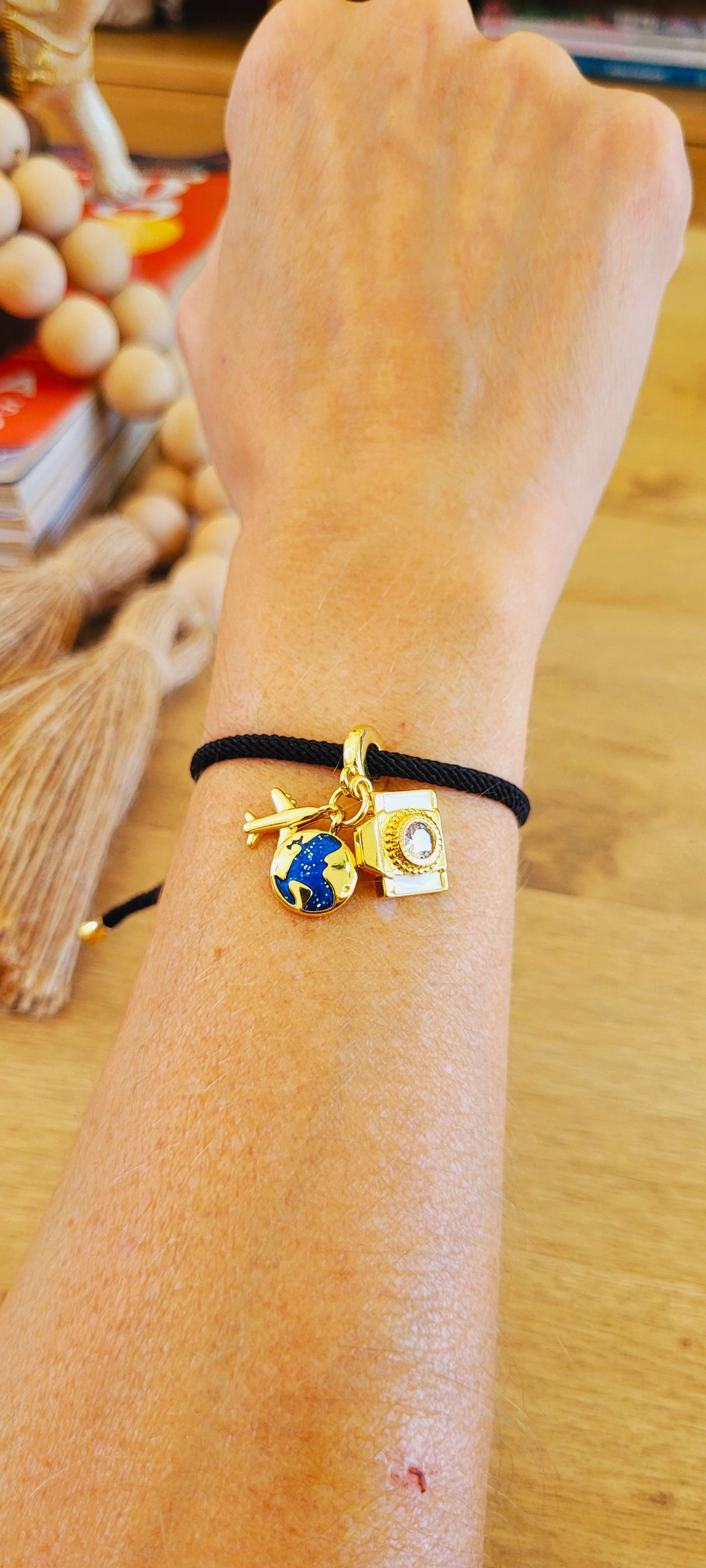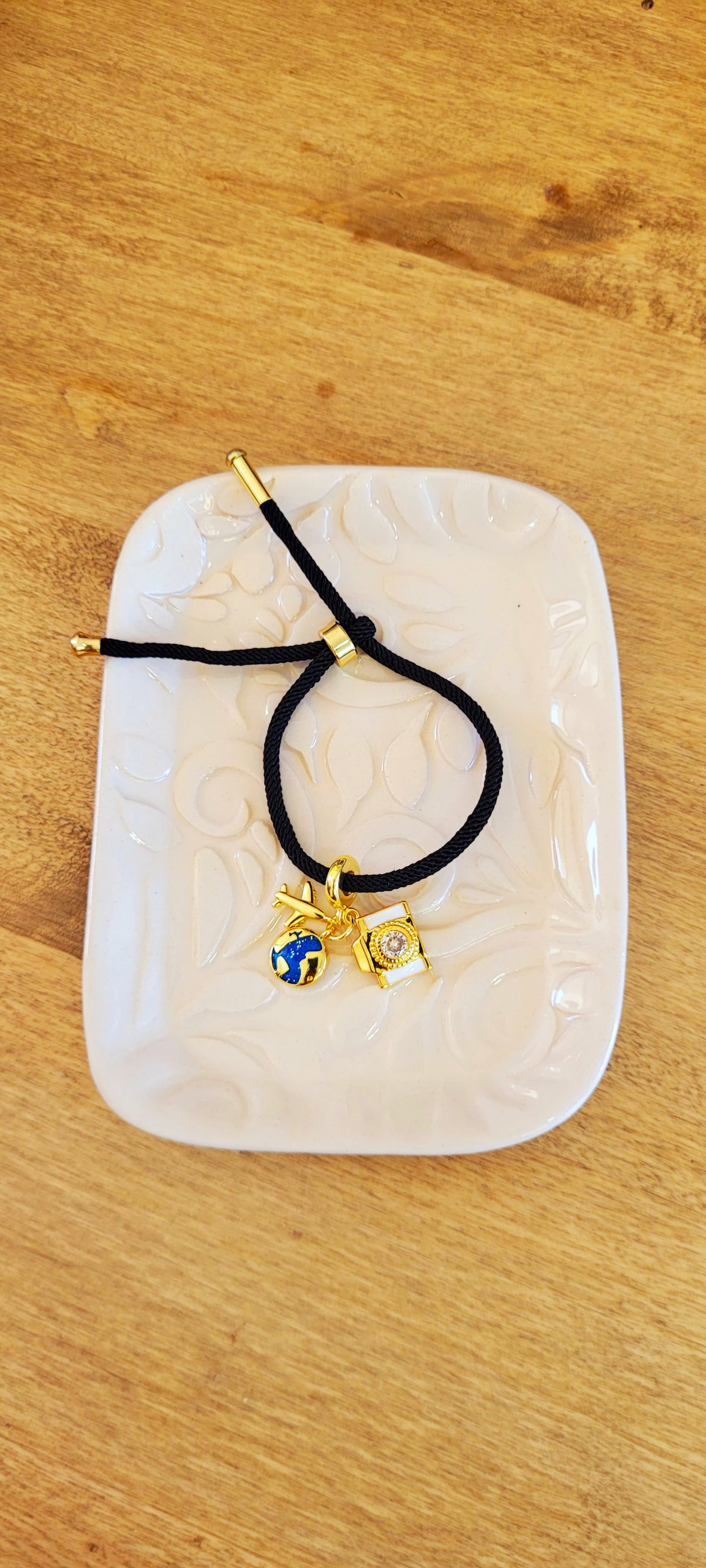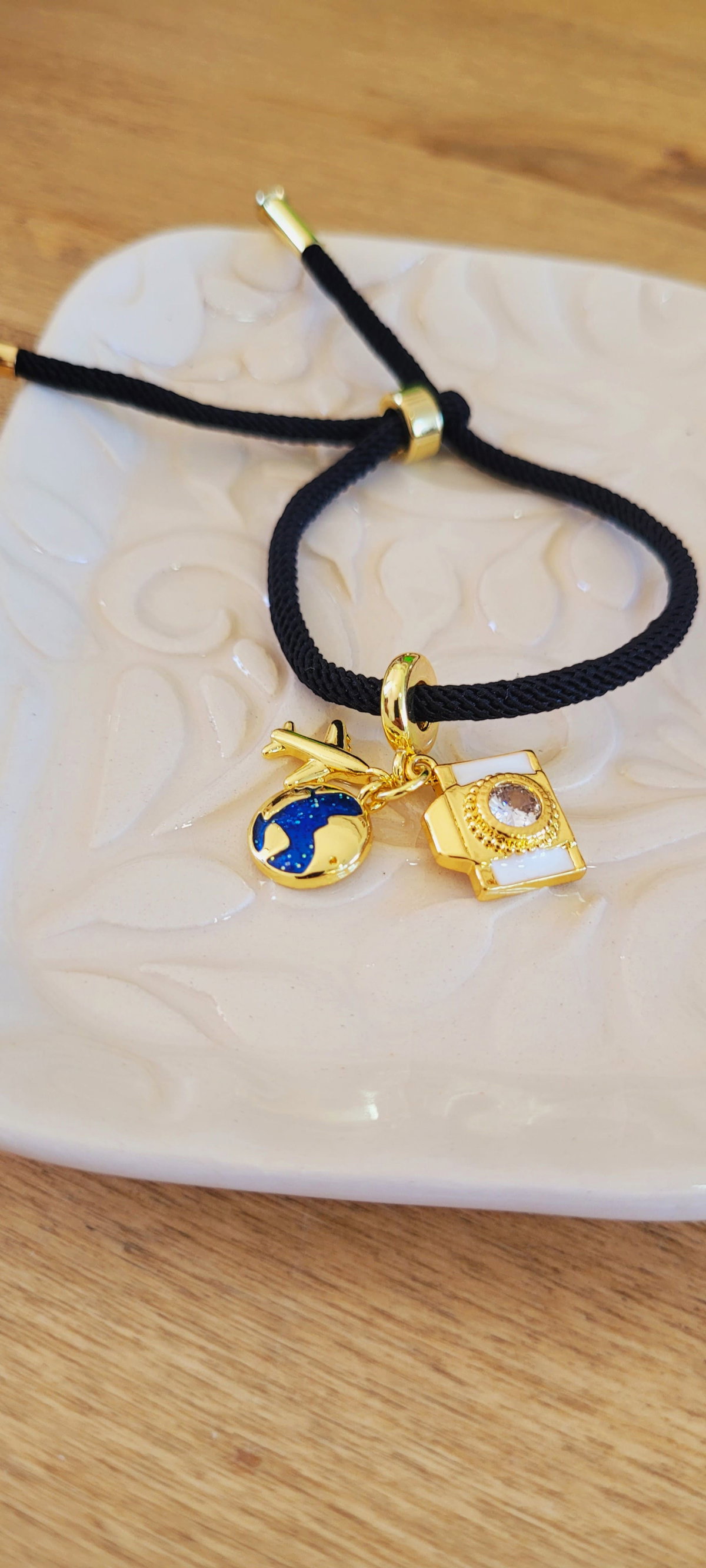 Pulsera Regulable Trenzada con Dije Pandor, Oro laminado.