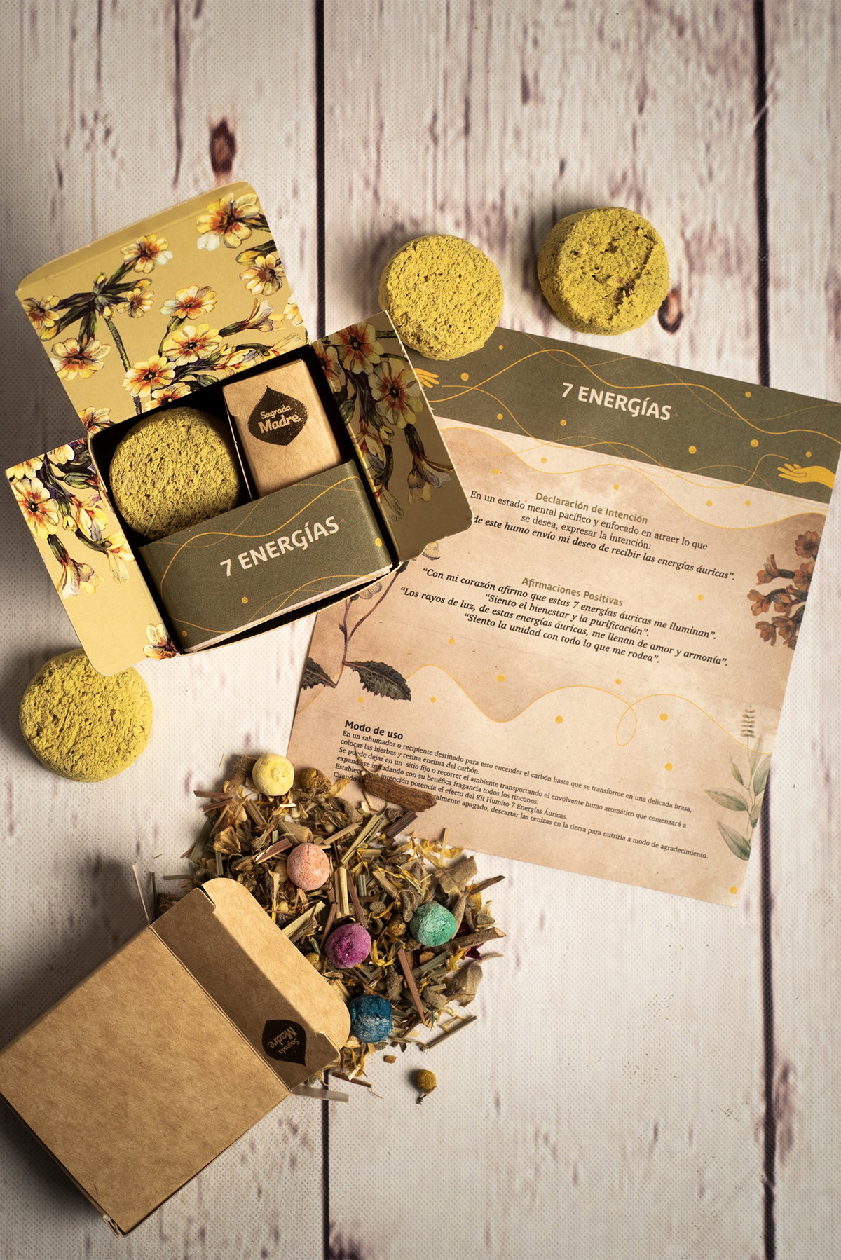 Cuando se expanden en el ambiente las fragancias de este Kit Humito, se percibe el aroma purificador del incienso, lo vivificante de la salvia, la calma que trae la manzanilla, la purificación que da el palo santo y el perfume de la rosa y la caléndula que invitan a la unidad. Estos 7 aromas, combinados como rayos de luz, limpian la energía áurica.