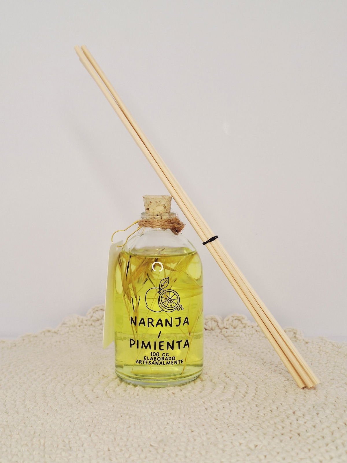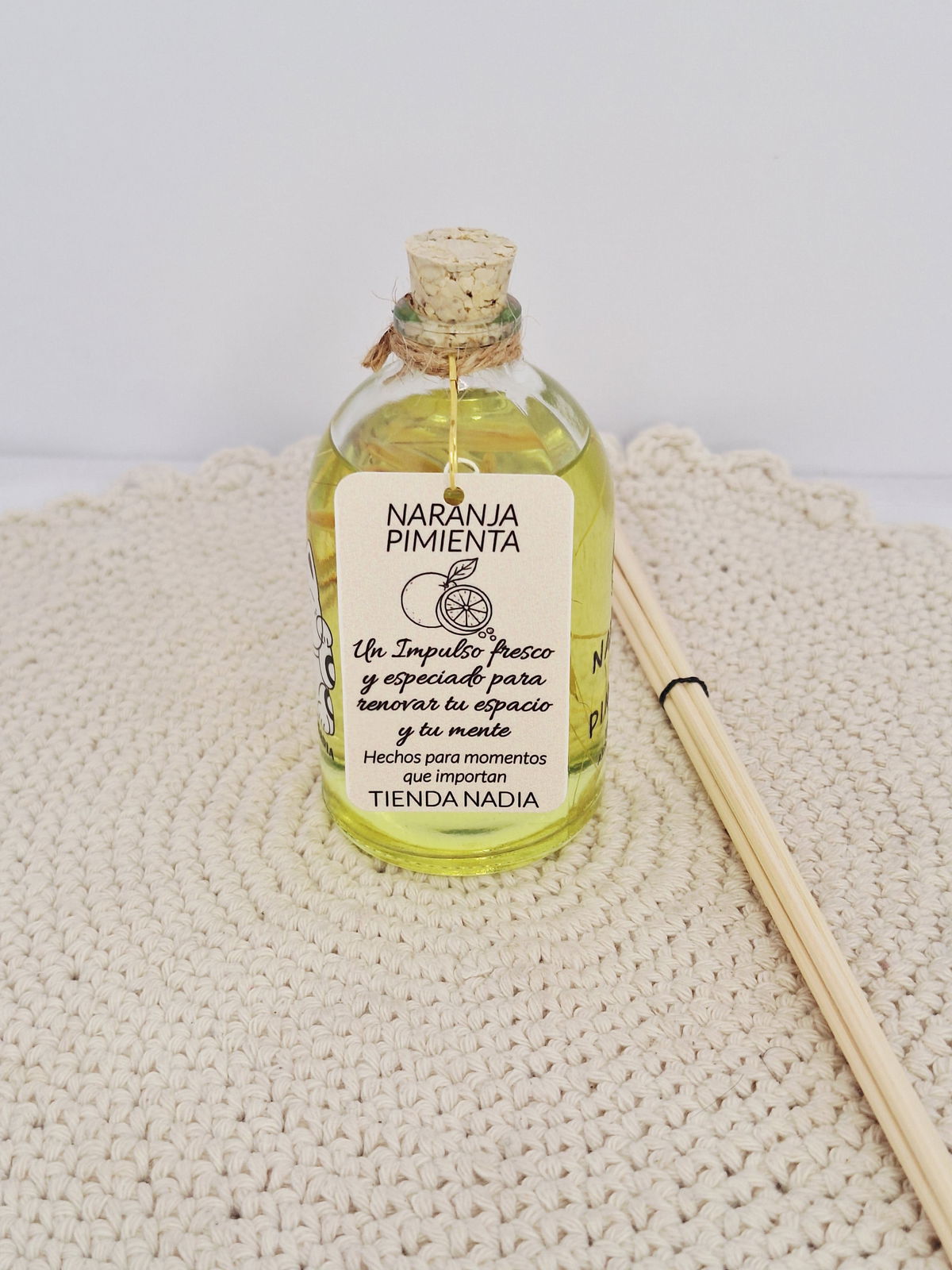 Difusor de Varilla Naranja & PimientaUn Impulso Fresco y Especiado Para Renovar tu Espacio y tu Mente.Hechos Para Momentos que Importan.Elaborados Artesanalmente Con Mucho Amor.