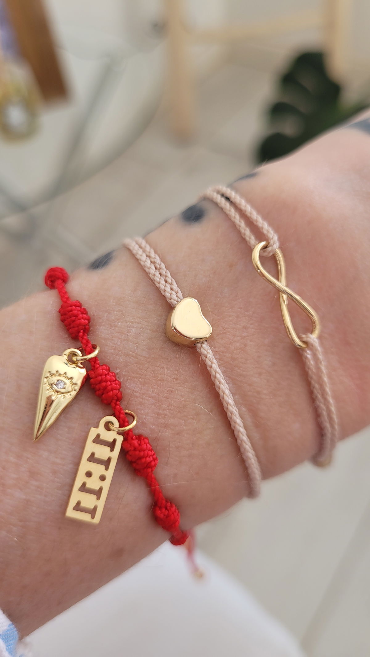 Pulsera de dije oro laminado y cordon trenzado