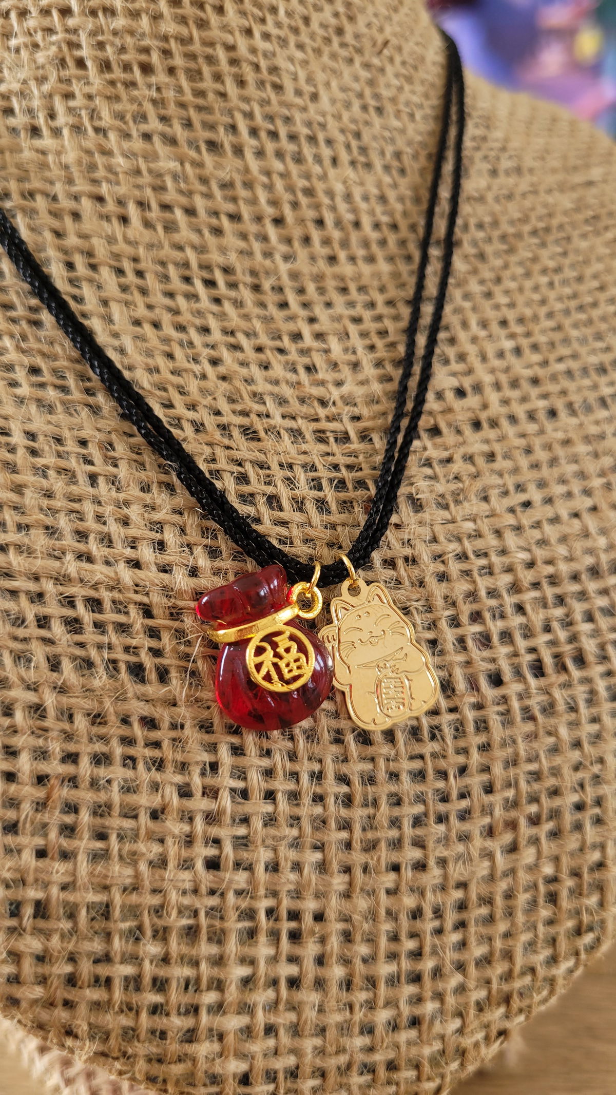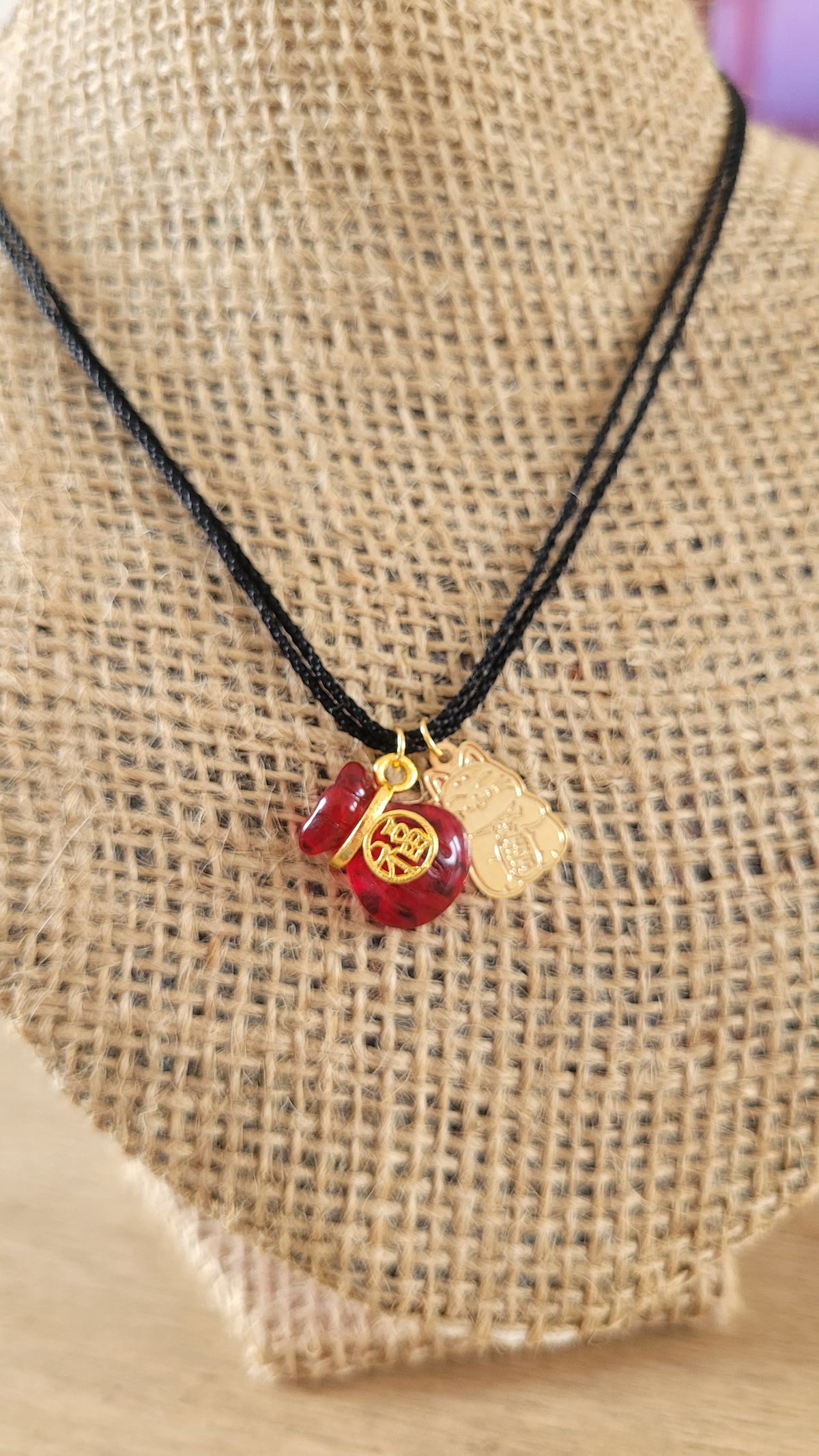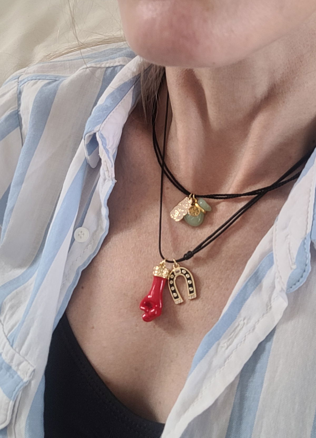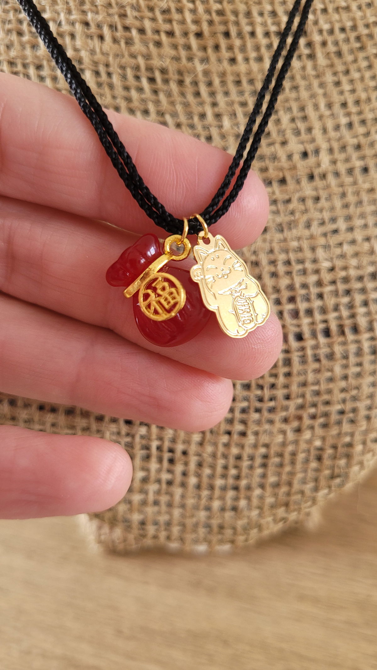 Hermoso colgante de cordon trenzado y dijes de oro laminado para que armes tu mejor look