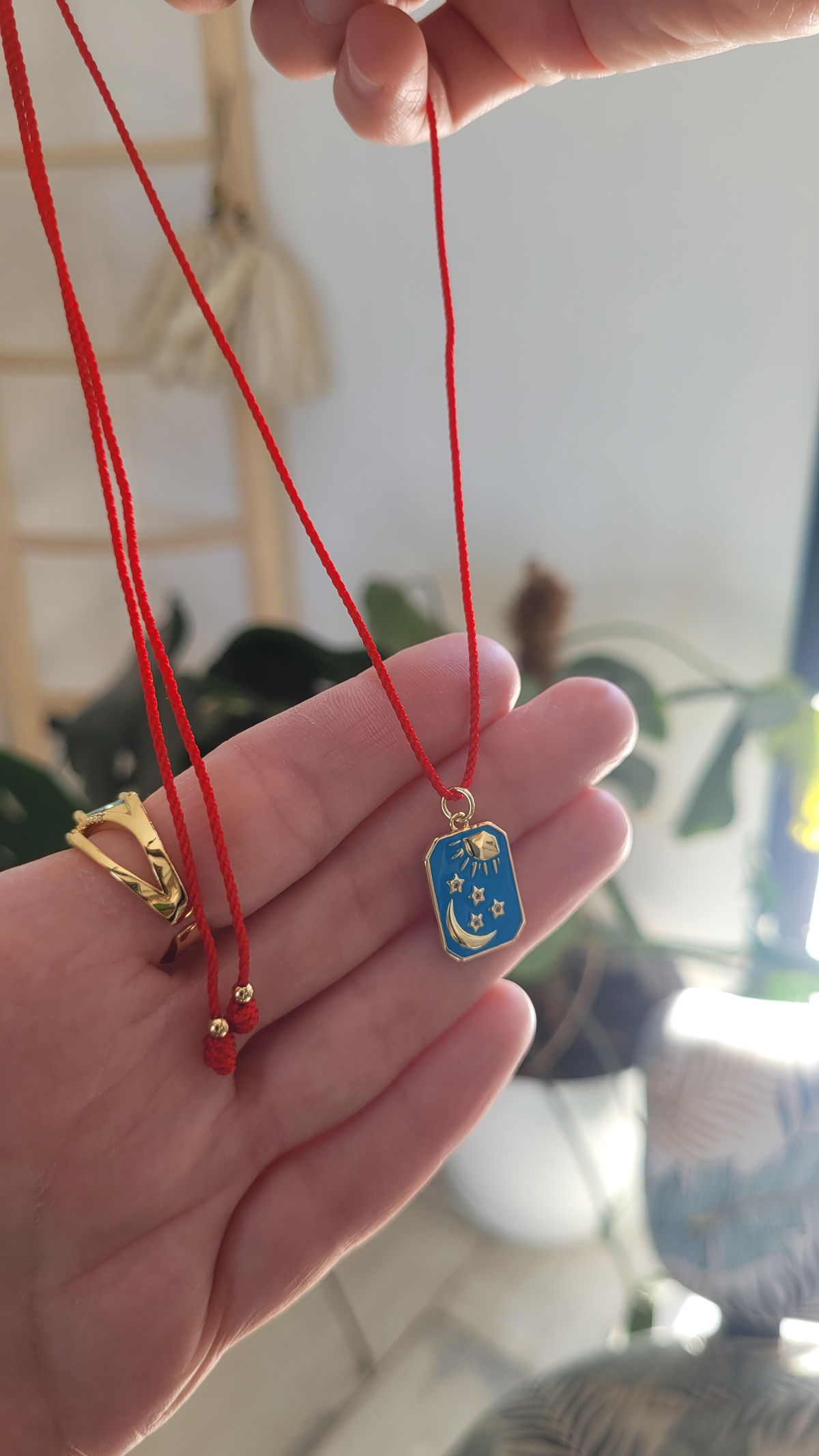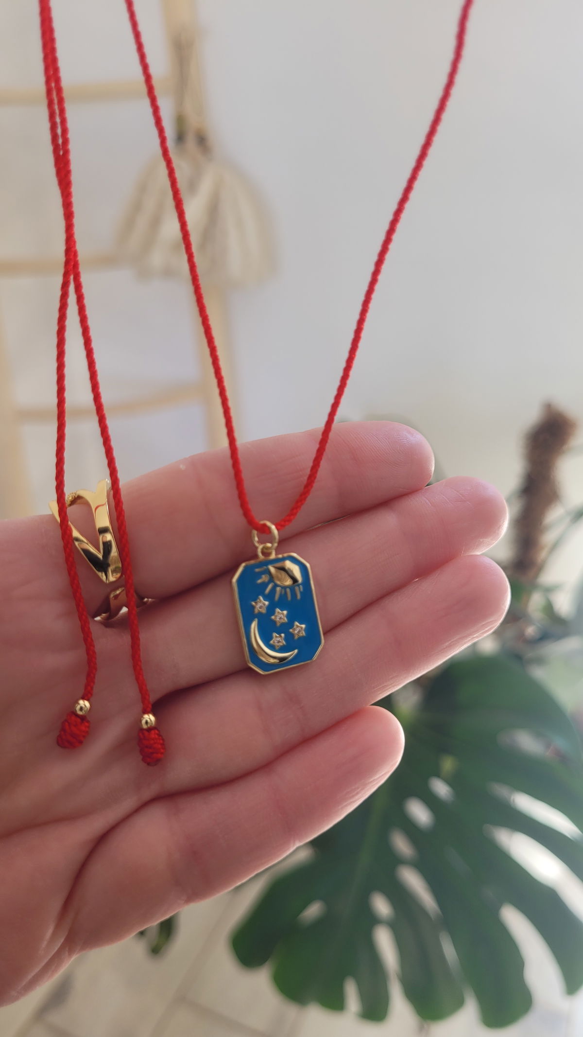 Collarcito de cordon trenzado y dije de placa esmaltado oro laminado