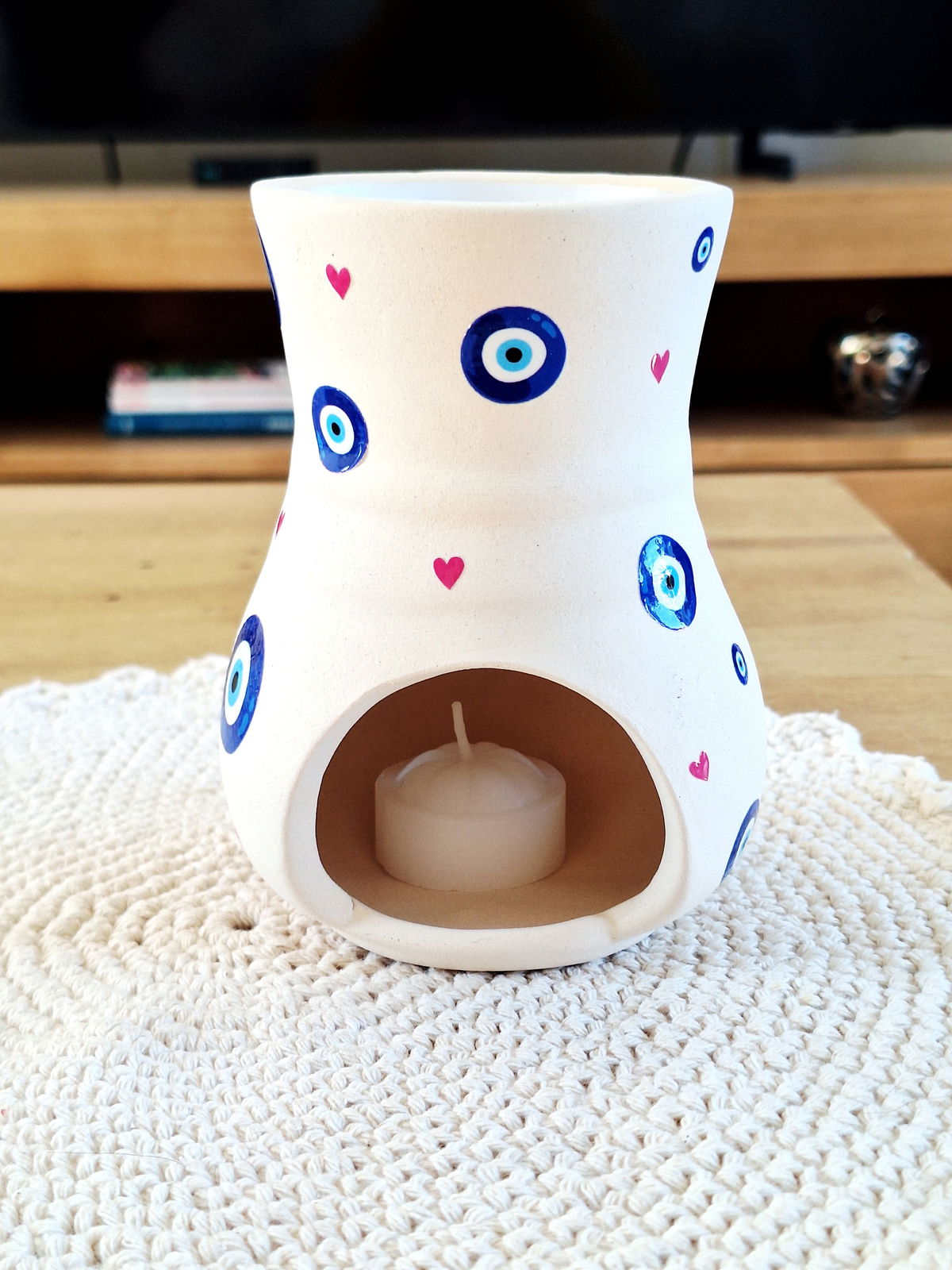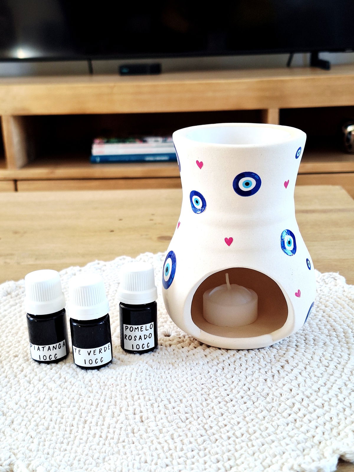 Hermoso y delicado kit Hornito de ceramica con 3 esencias (Pitanga, te verde y pomelo rosado)