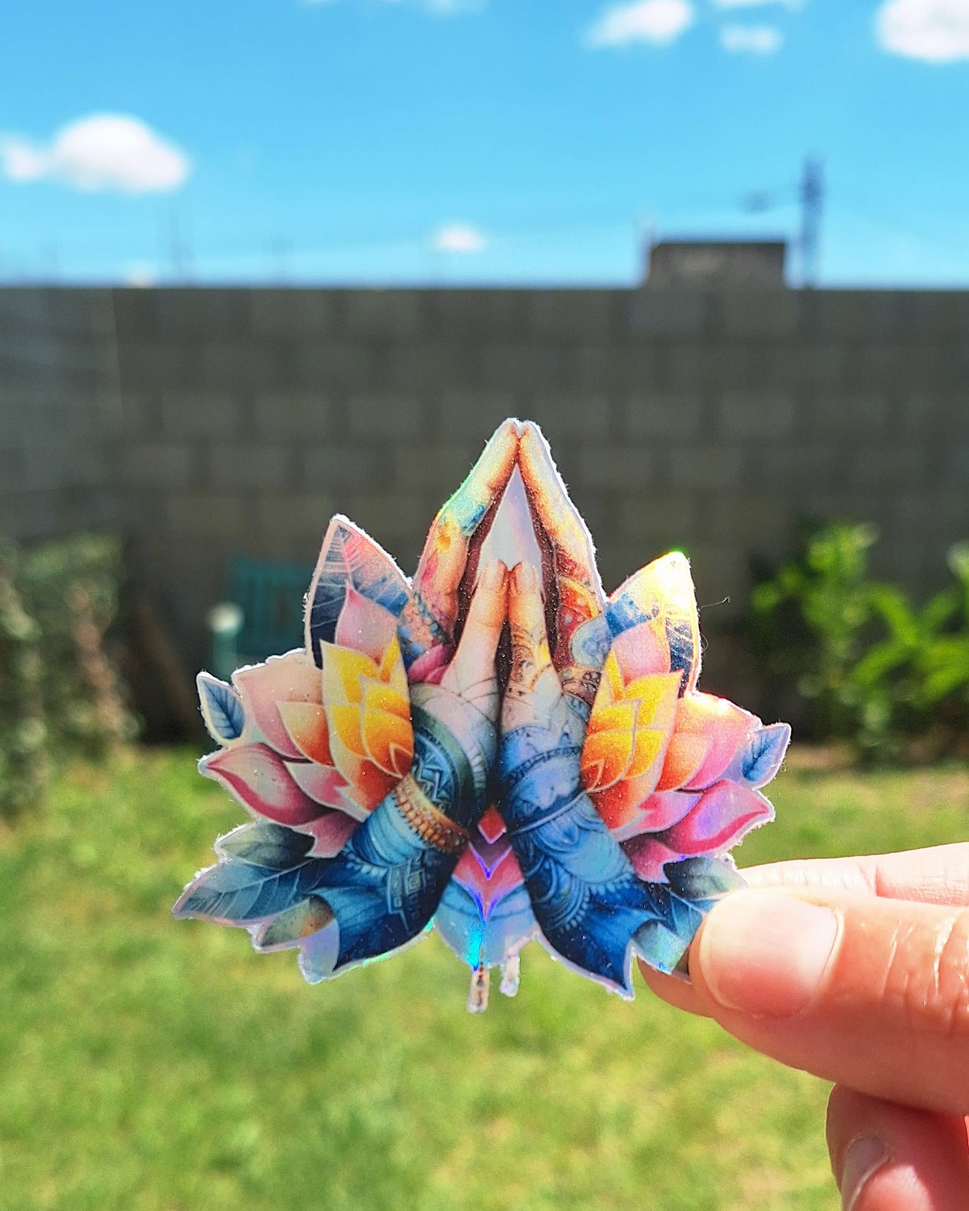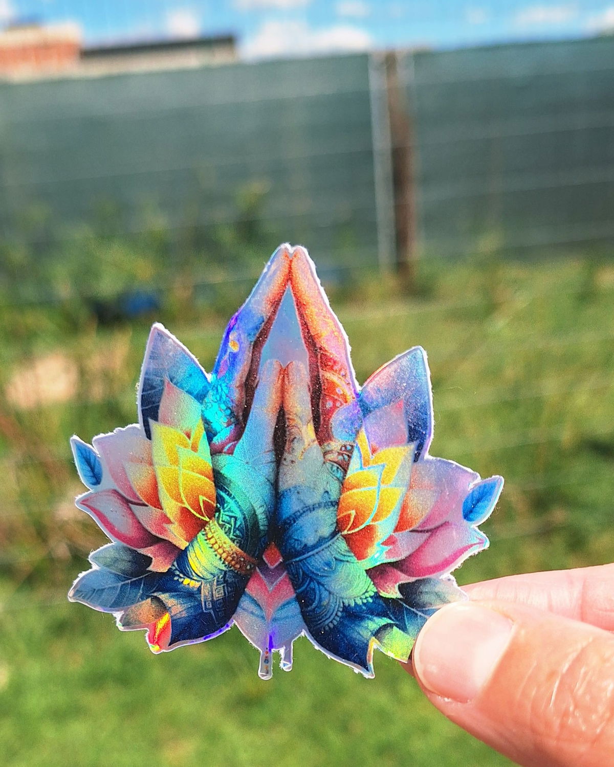 Sticker holográfico que logran un hermoso efecto arcoiris, realizado en vinilo de alta calidad, resistente al agua.