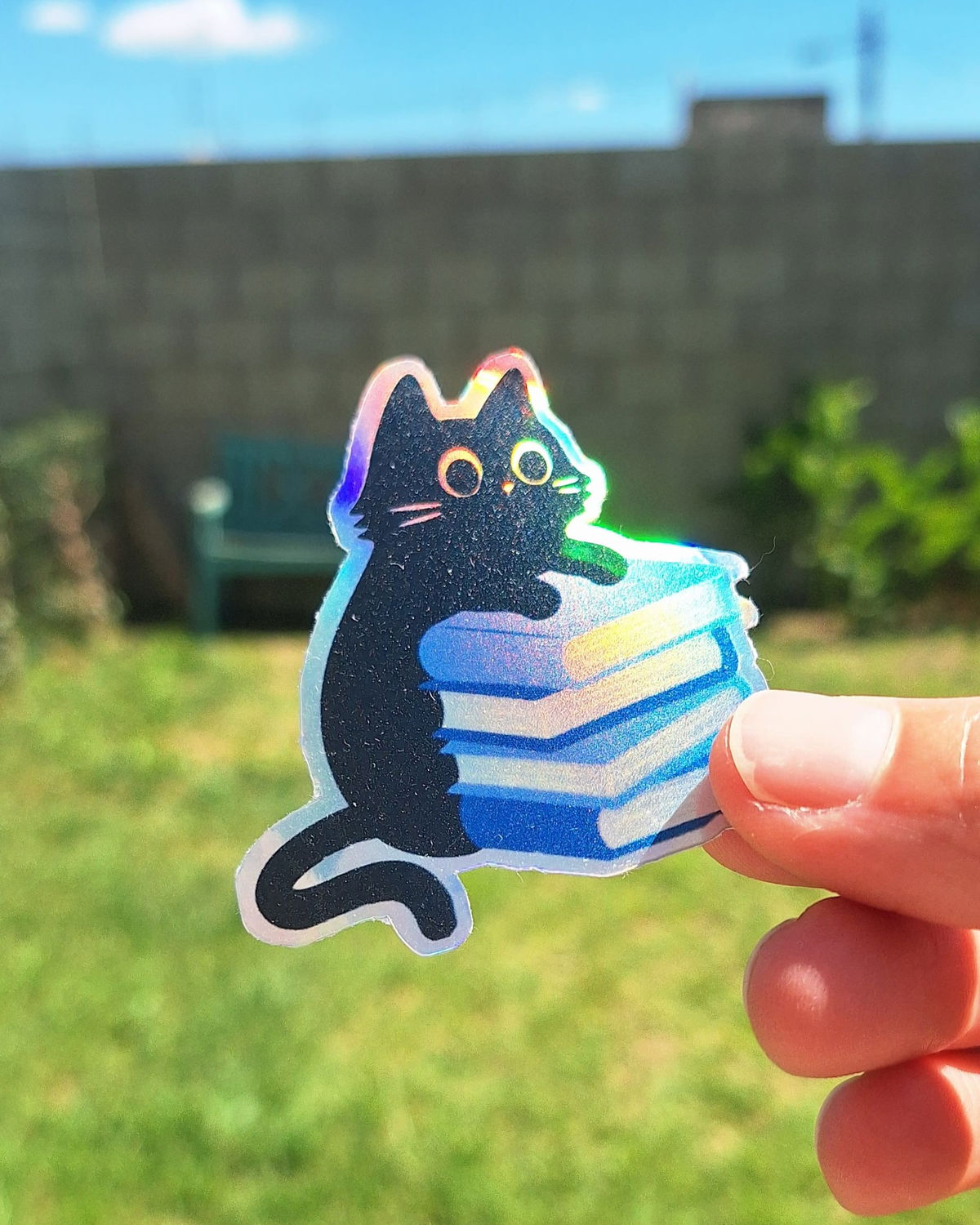 Sticker holográfico que logran un hermoso efecto arcoiris, realizado en vinilo de alta calidad, resistente al agua.