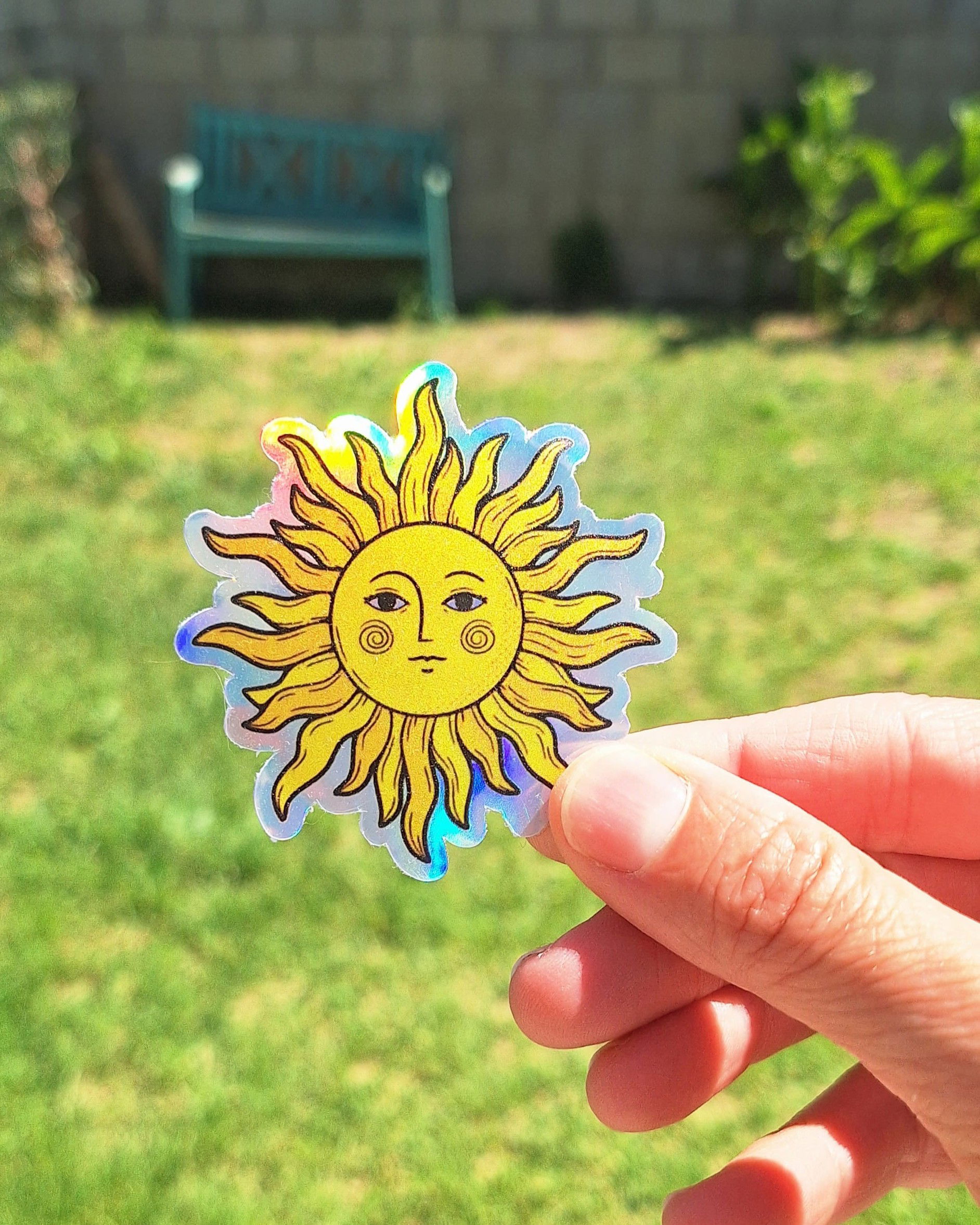 Sticker holográfico que logran un hermoso efecto arcoiris, realizado en vinilo de alta calidad, resistente al agua.