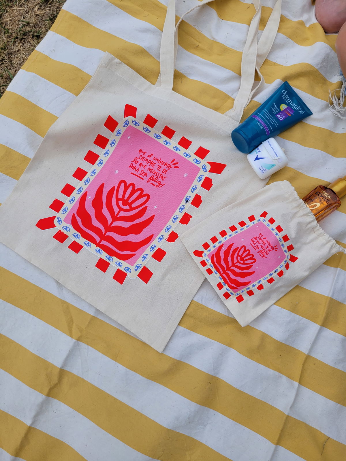 Hermosos diseños en conjunto de Tote bag y mini bag, realizados en lienzo.