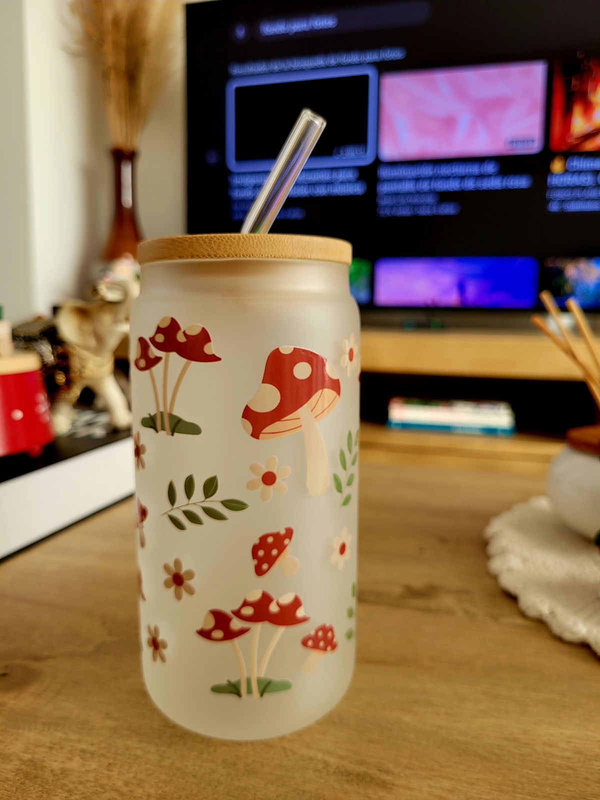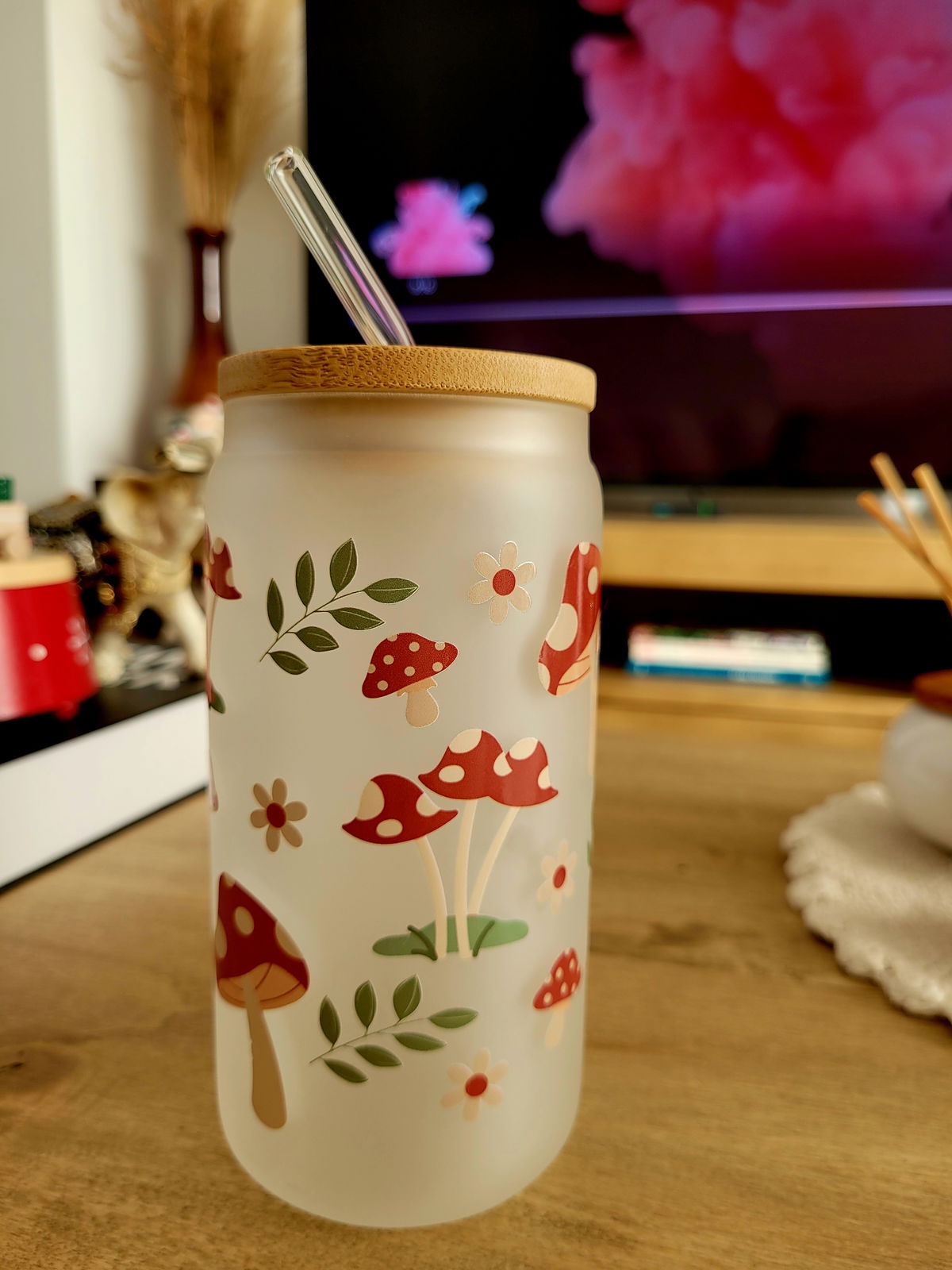 Vaso de Vidrio Esmerilado y Tapa de Bambu