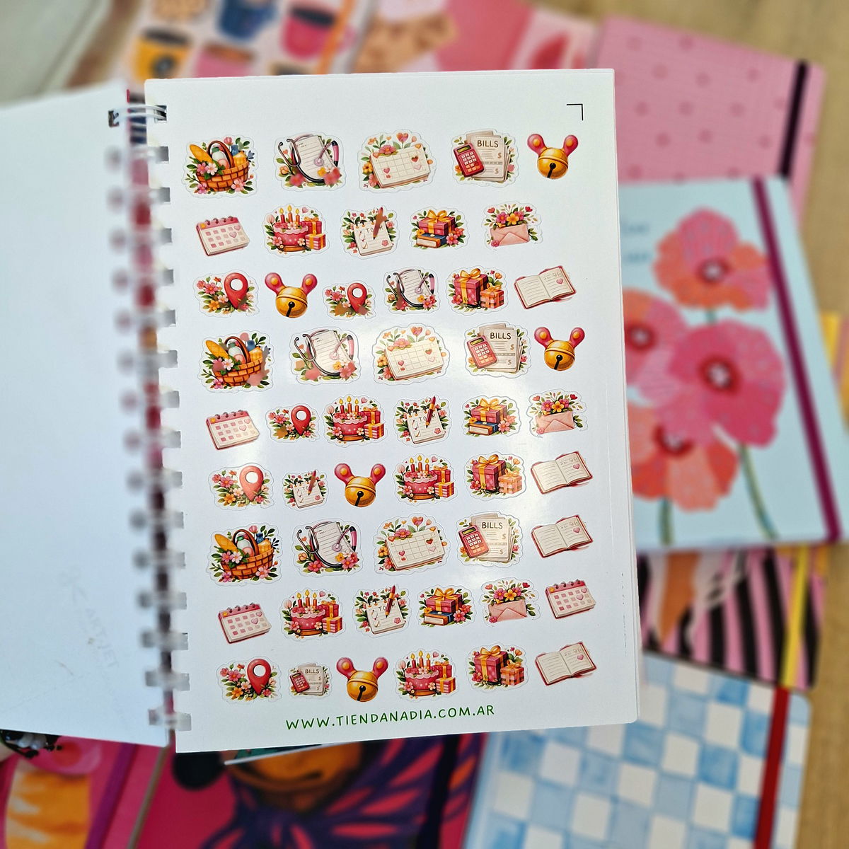 Cuaderno tapa dura anillado de 75hojas de 90gr, con planchitas de stickers