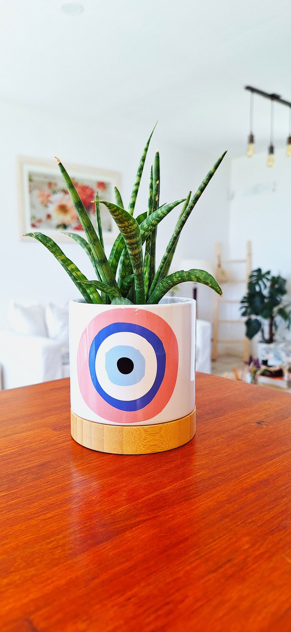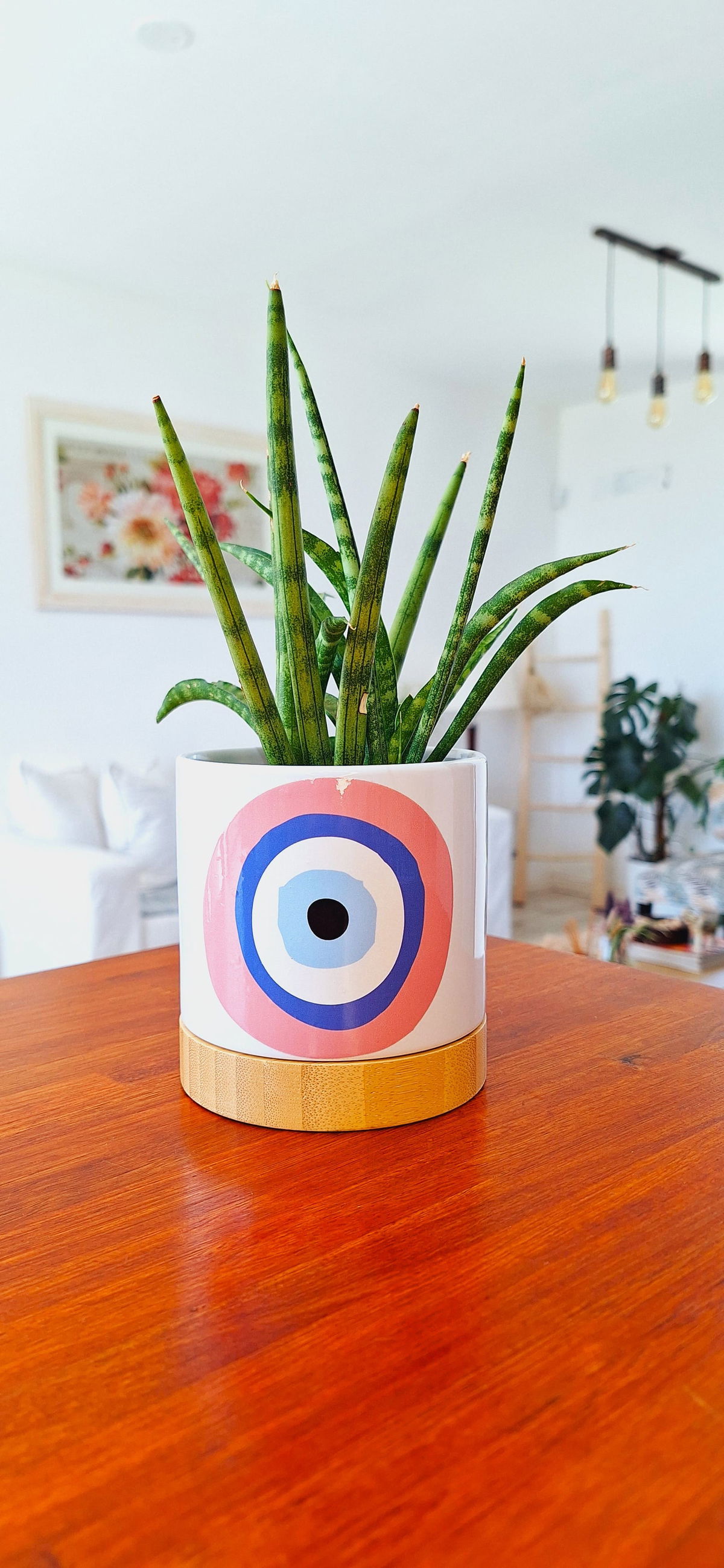 Macetero De Cerámica y Bamboo Eye Rose