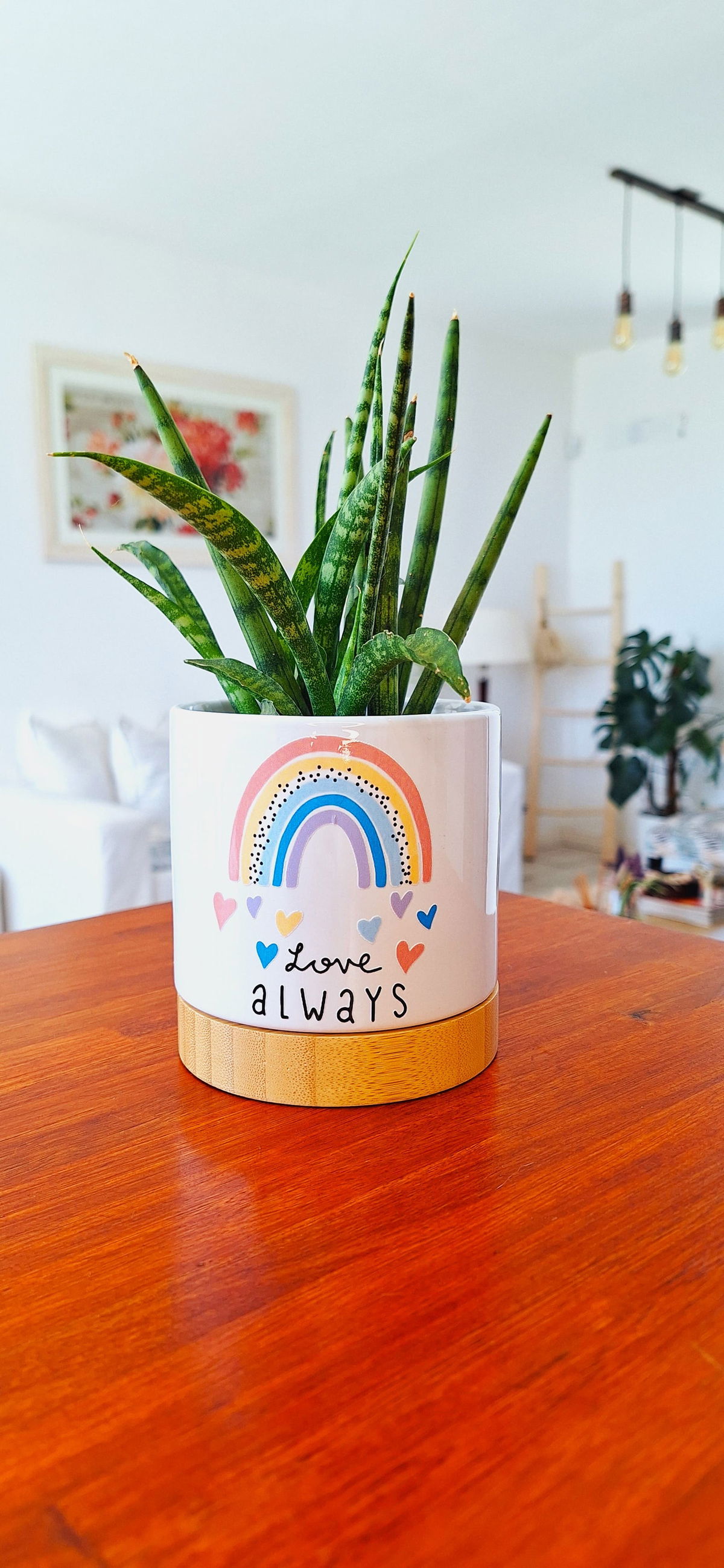 Macetero De Cerámica y Bamboo Love