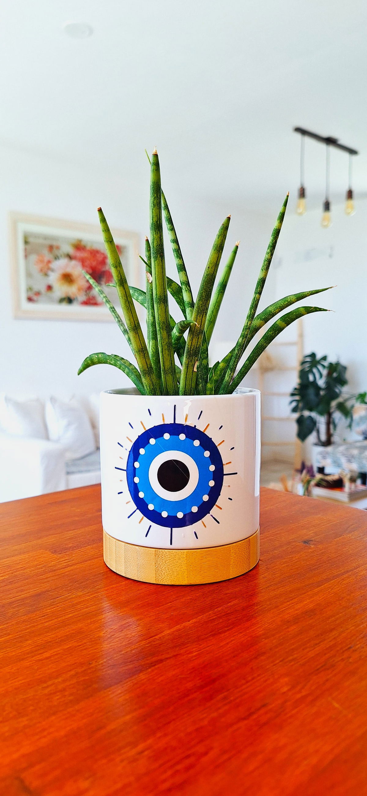 Macetero De Cerámica y Bamboo Eye Blue