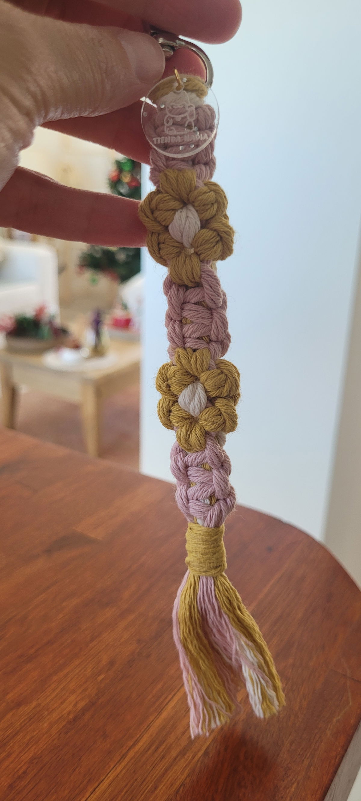Llaveritos tejiditos a mano con hilo de algodón con mosqueton de acero Plateado